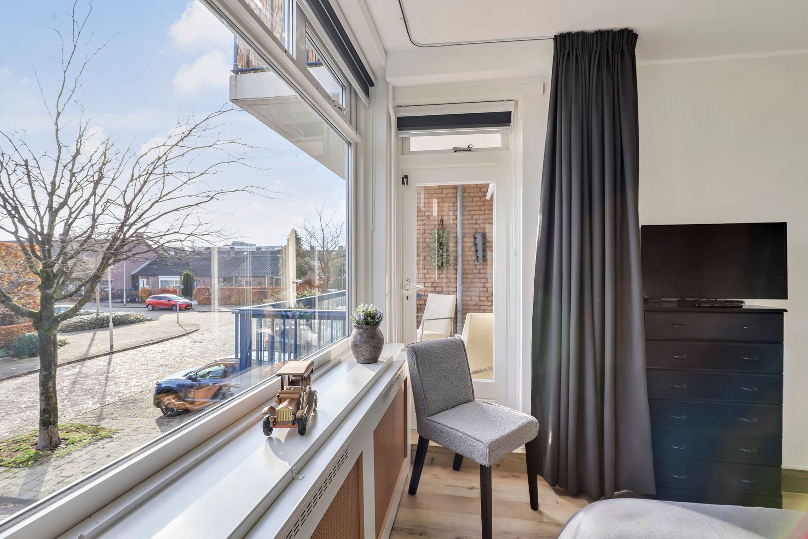 Door de ligging op een hoek is er een extra raam in de woonkamer wat zorgt voor een fraai geheel door het prettige lichtinval. Er zijn 2 balkons waarvan het grote balkon aan de voorzijde een heerlijke, zonnige ligging heeft op het zuidoosten.