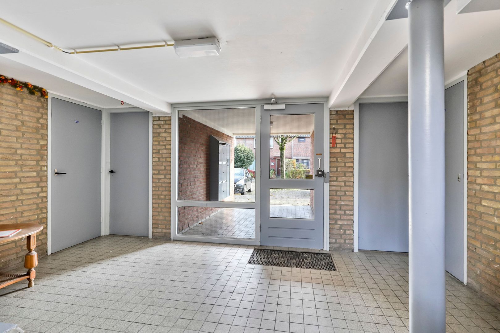 Centrale entree middels een intercominstallatie, toegang tot de bergingen, de brievenbussen en het trappenhuis. De ruime berging is voorzien van water, elektra, verwarming, douche en toilet.