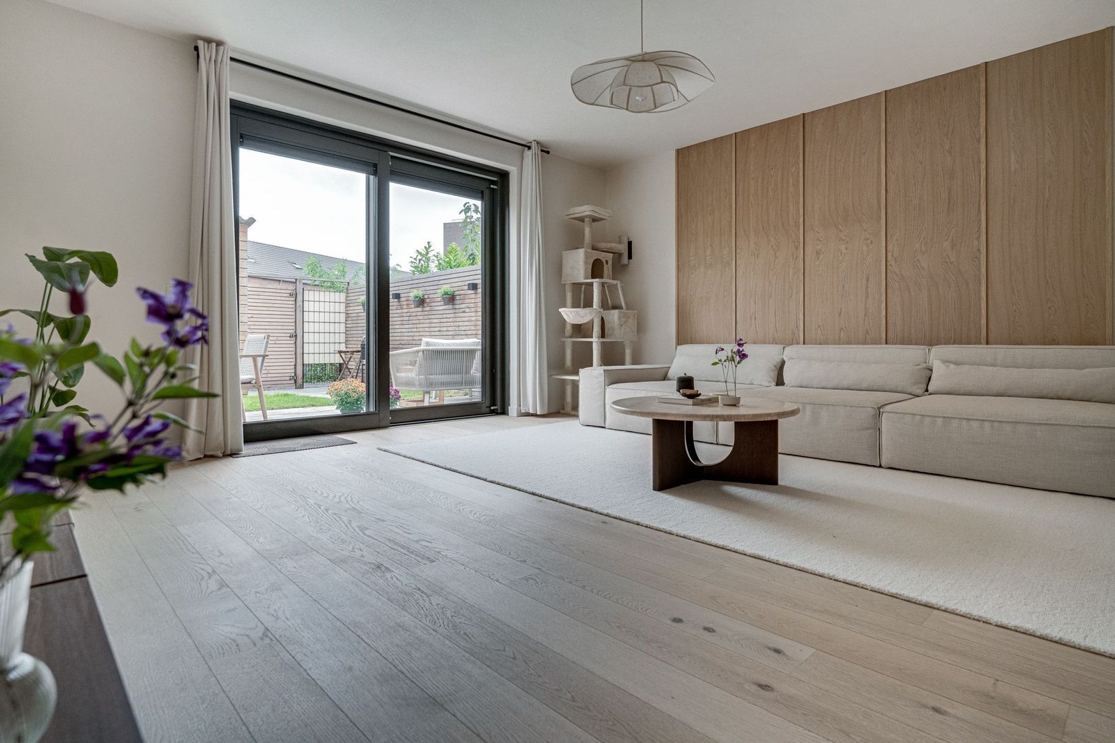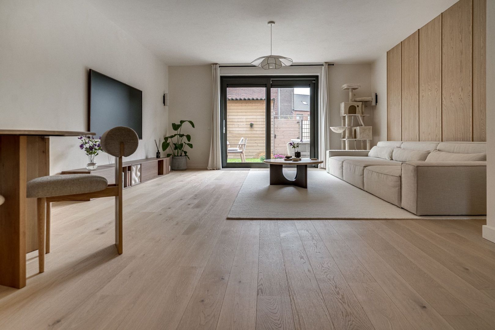 Deze in 2023 gebouwde woning is tot in detail afgewerkt met hoogwaardige materialen. Op de begane grond ligt een houten vloer van Bauwerk met B-Protect afwerking en vloerverwarming, onderhoudsvriendelijk en stijlvol. De uitgebouwde woonkamer biedt een royale leefruimte met veel licht. Via de schuifpui stap je de zonnige tuin op het zuiden in.