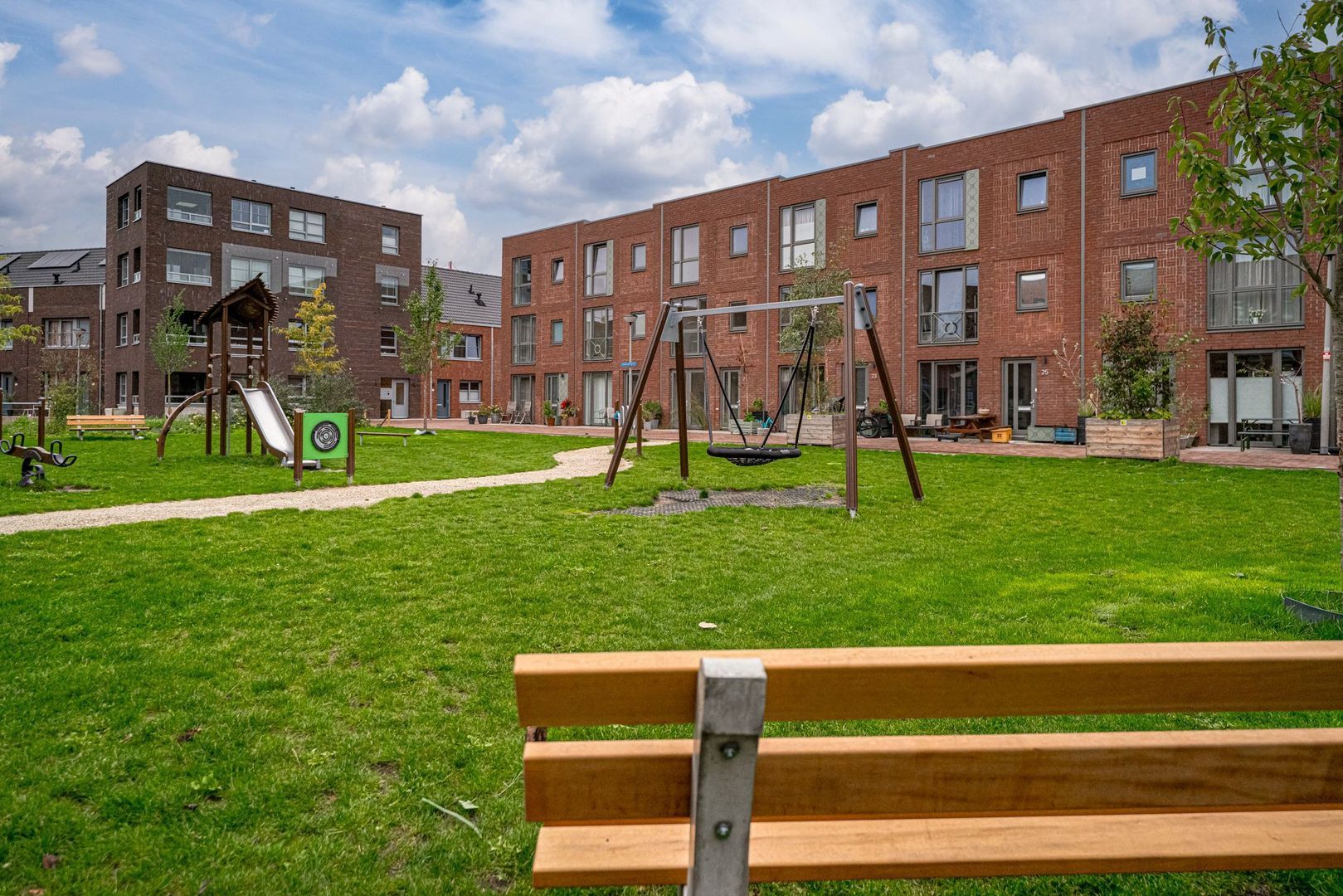 Aan de voorzijde ligt een autoluw plein met speeltuin, ideaal voor gezinnen. Achter de woning heb je een privé parkeerplaats op afgesloten terrein met laadpaal voor je elektrische auto.