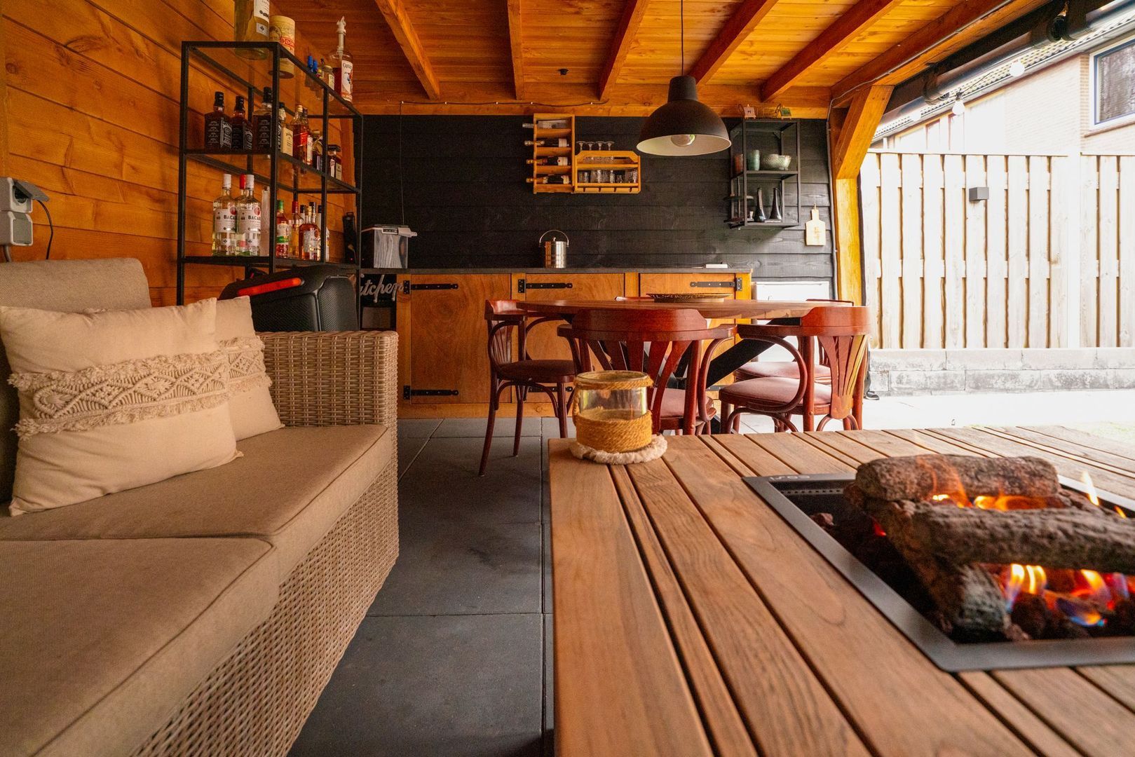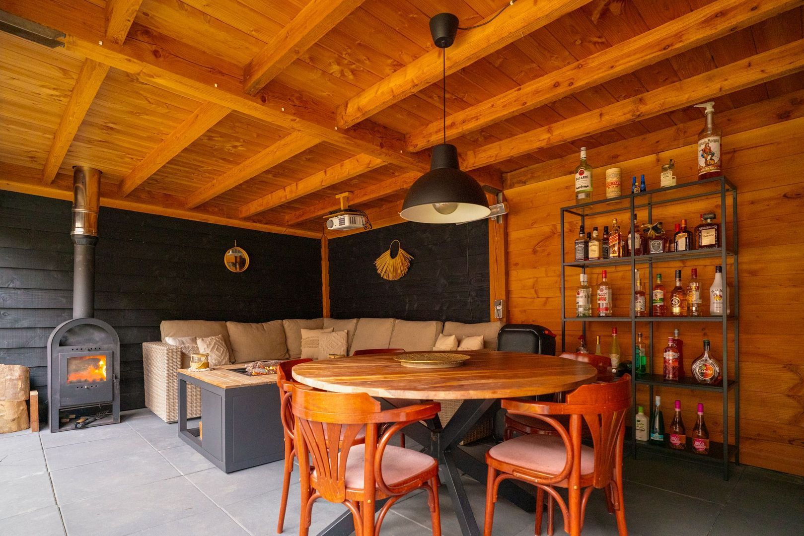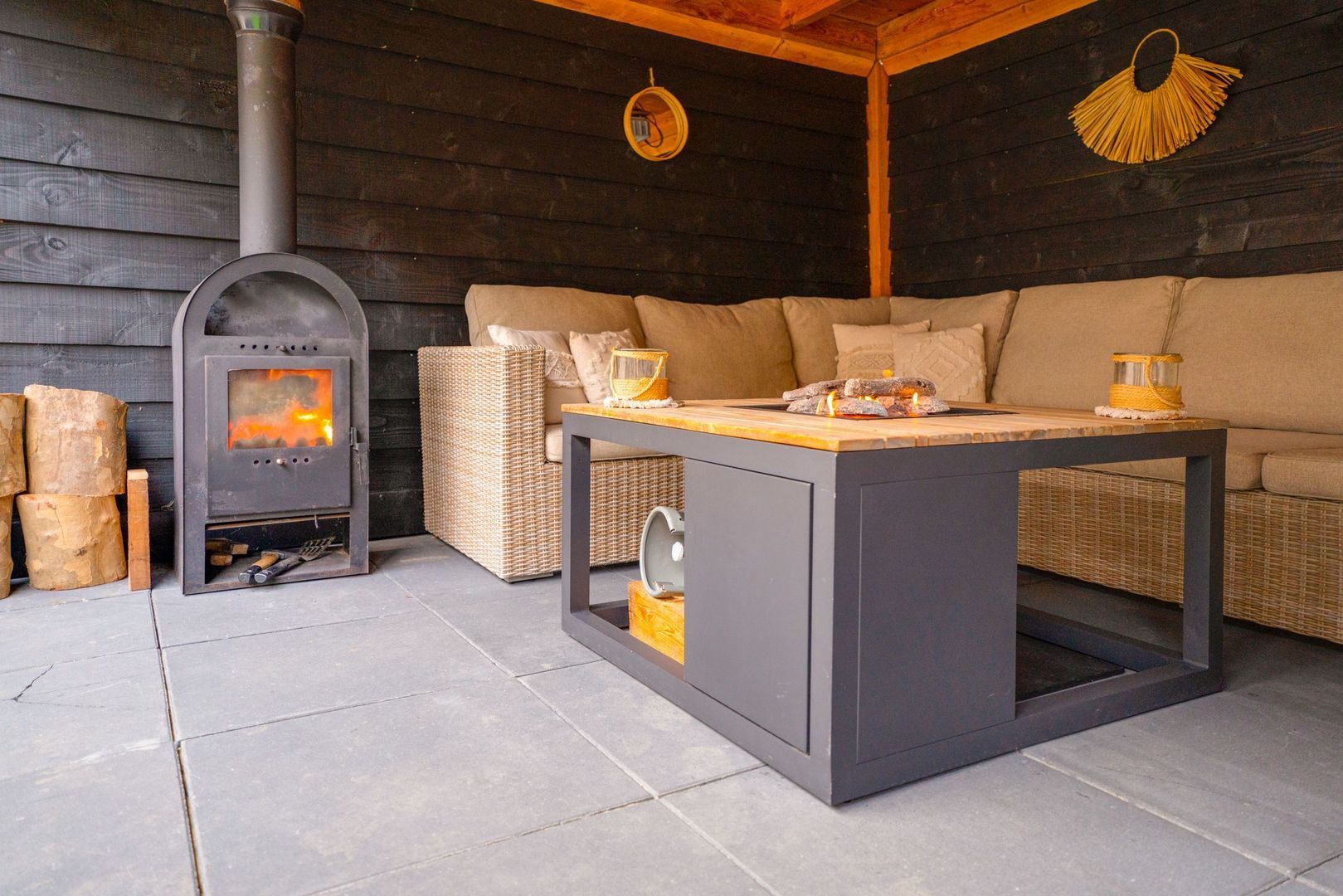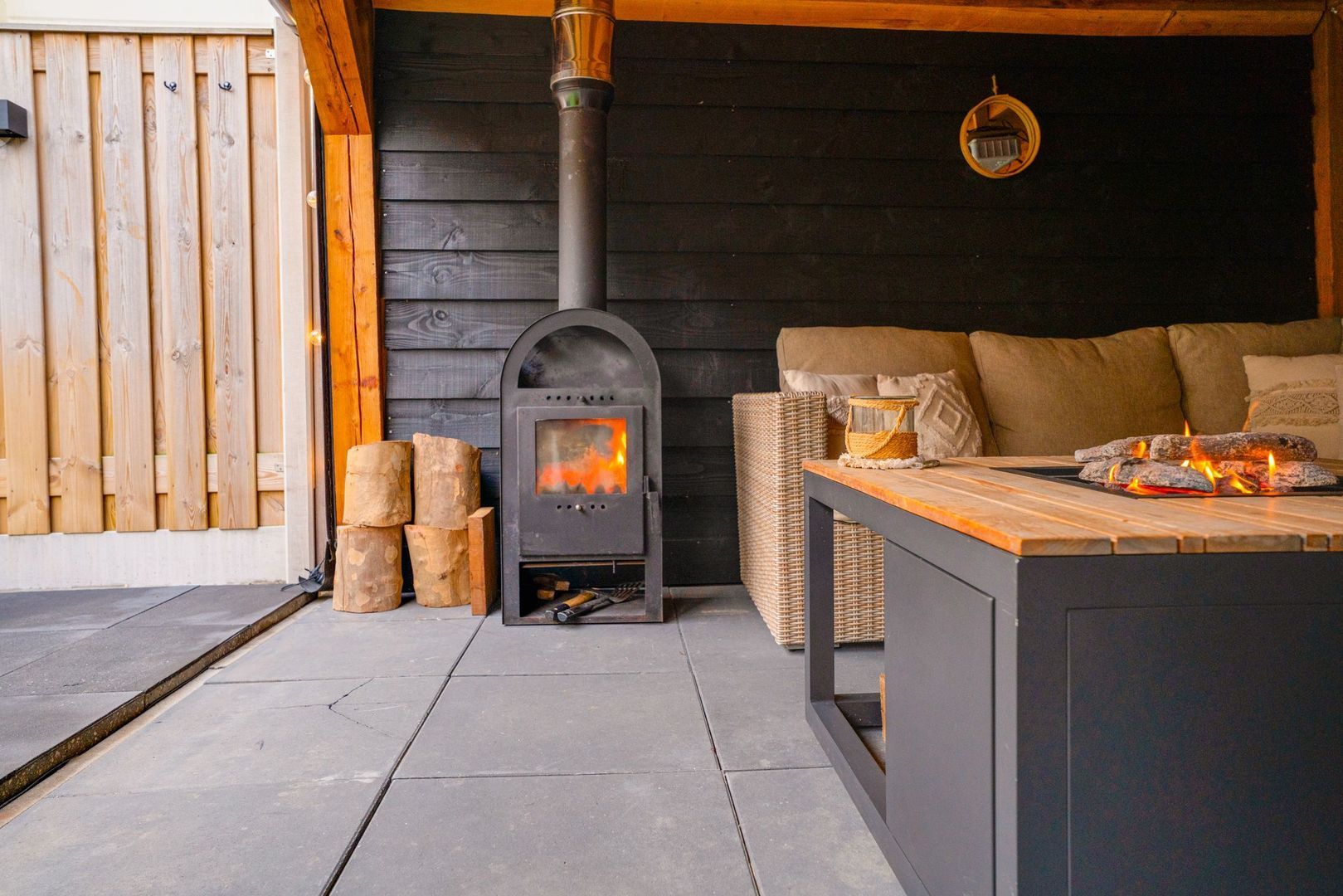 • De achtertuin heeft een grote overkapping met een houtkachel en een heather;