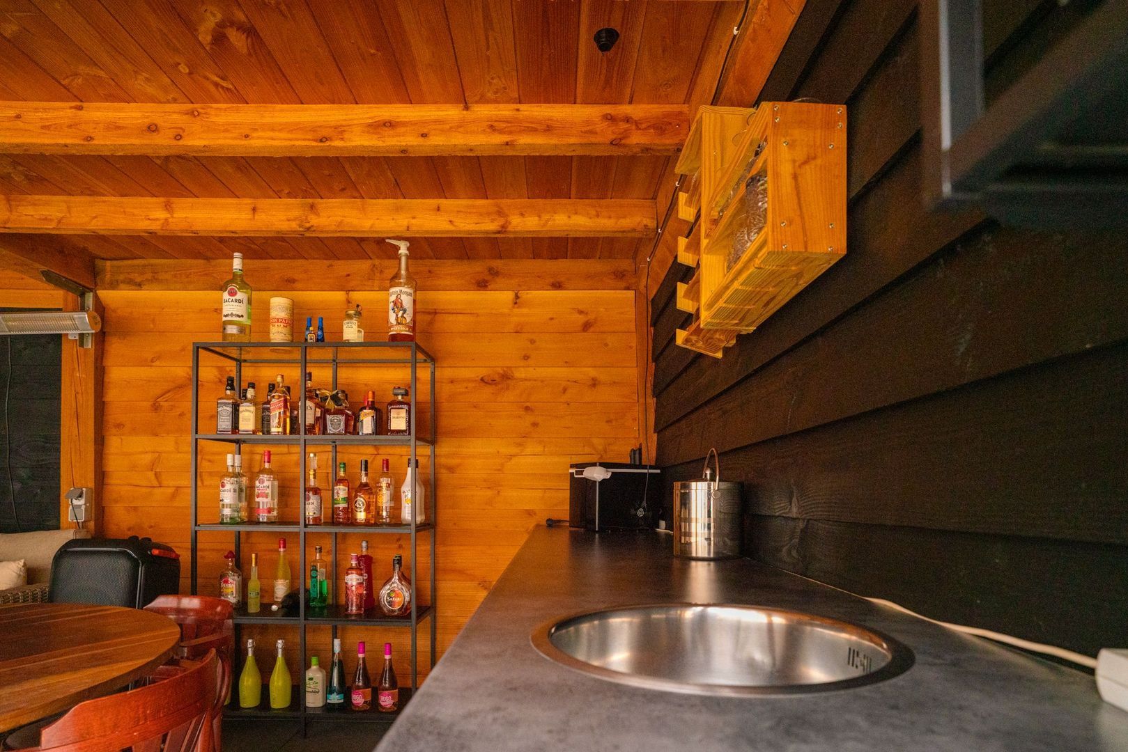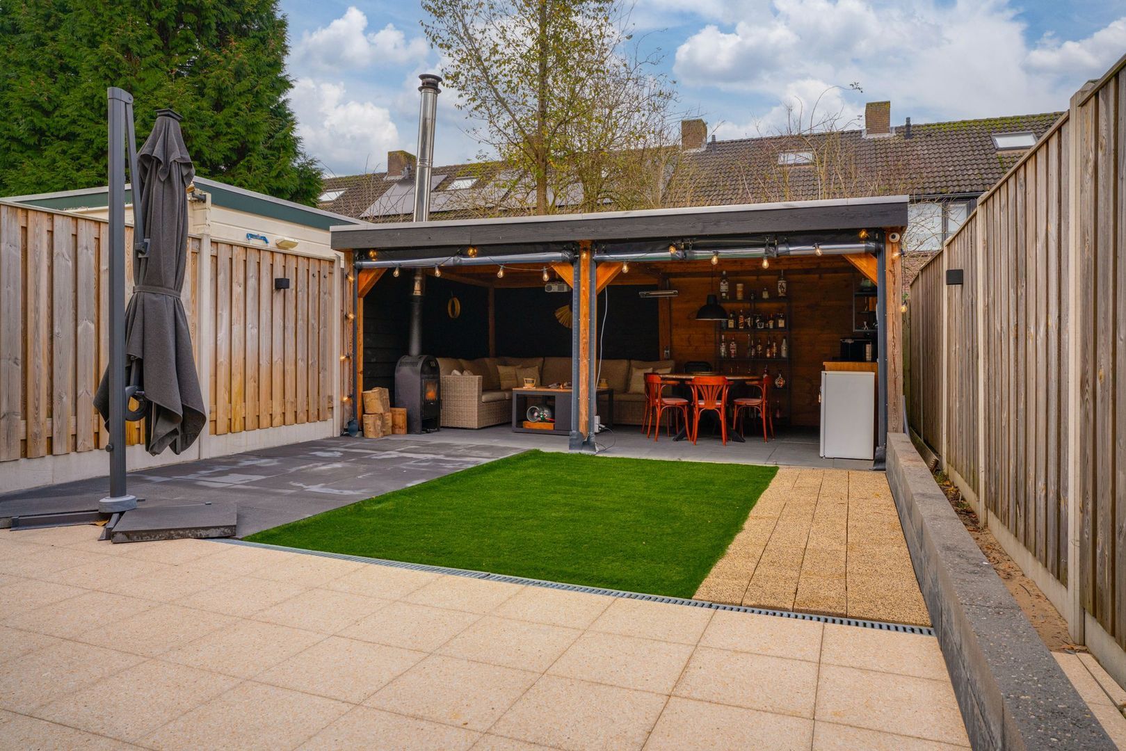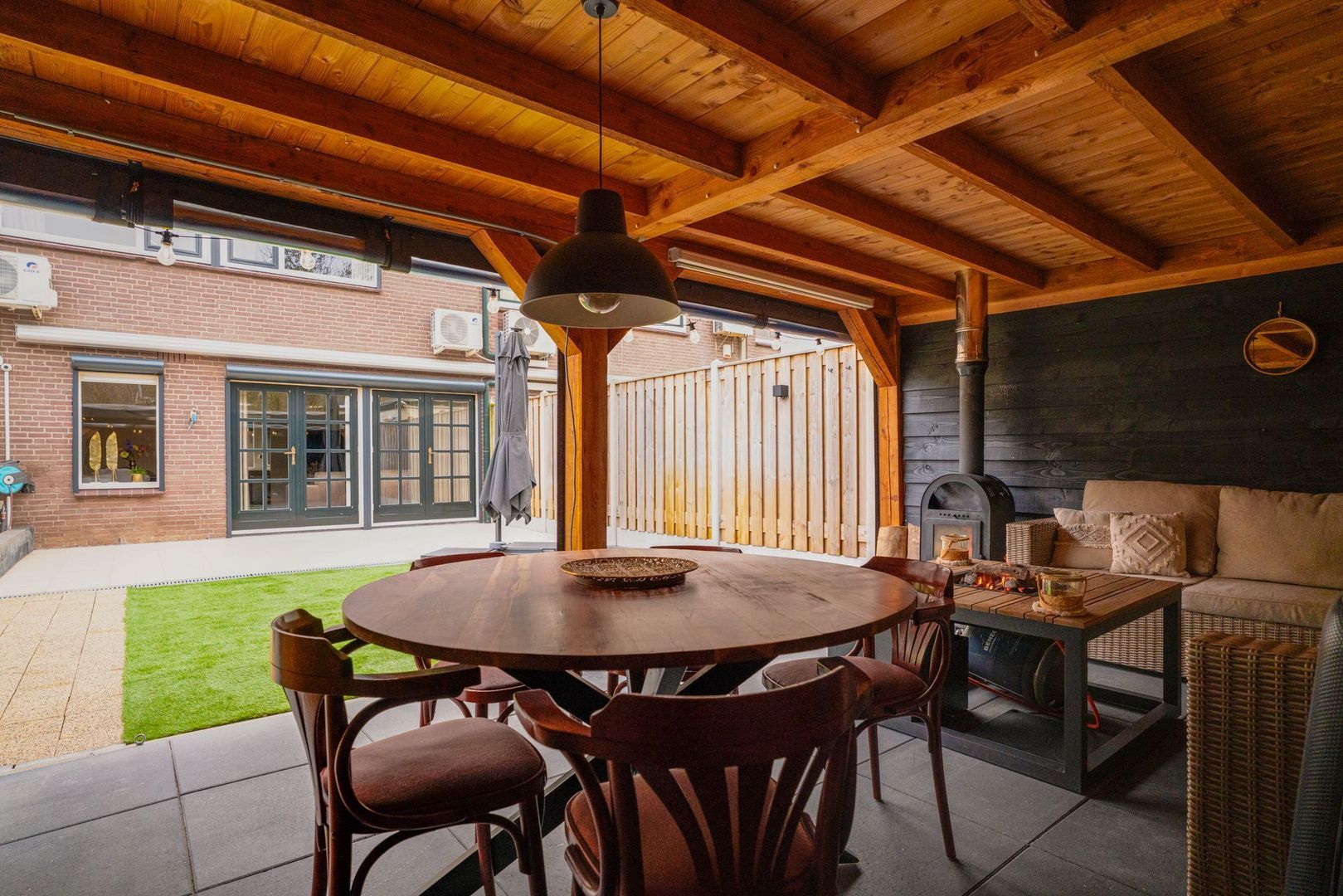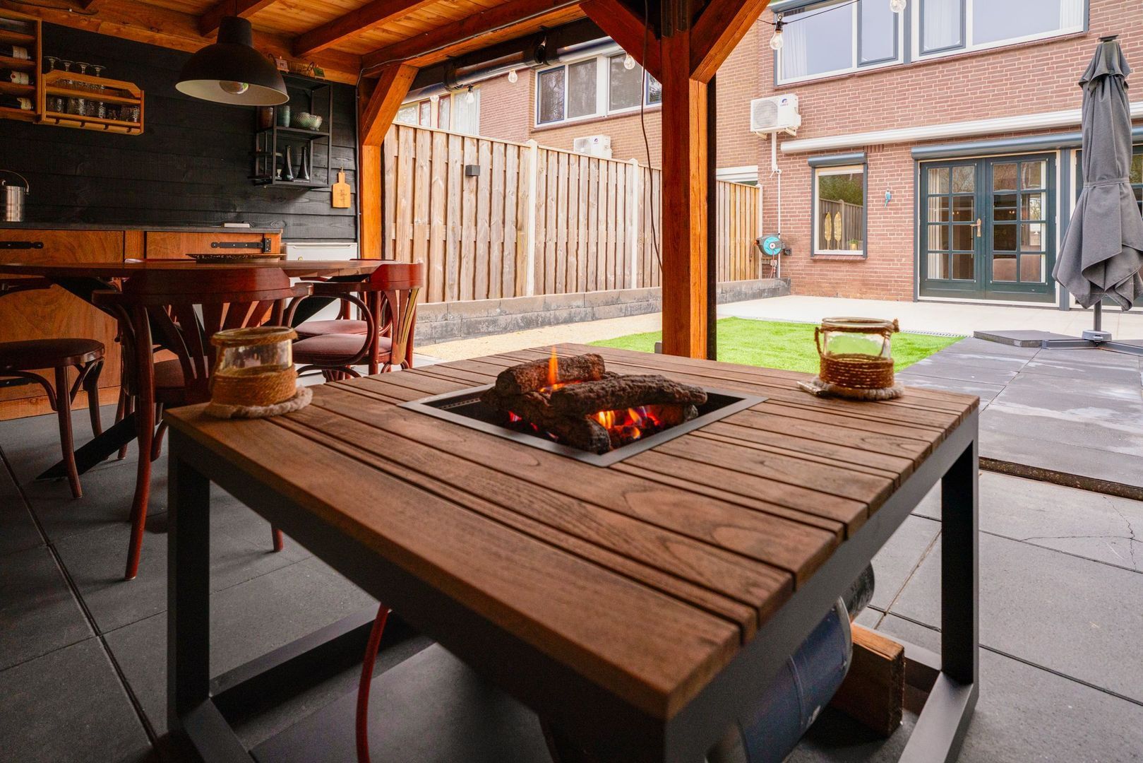 • De achtertuin heeft een grote overkapping met een houtkachel en een heather;