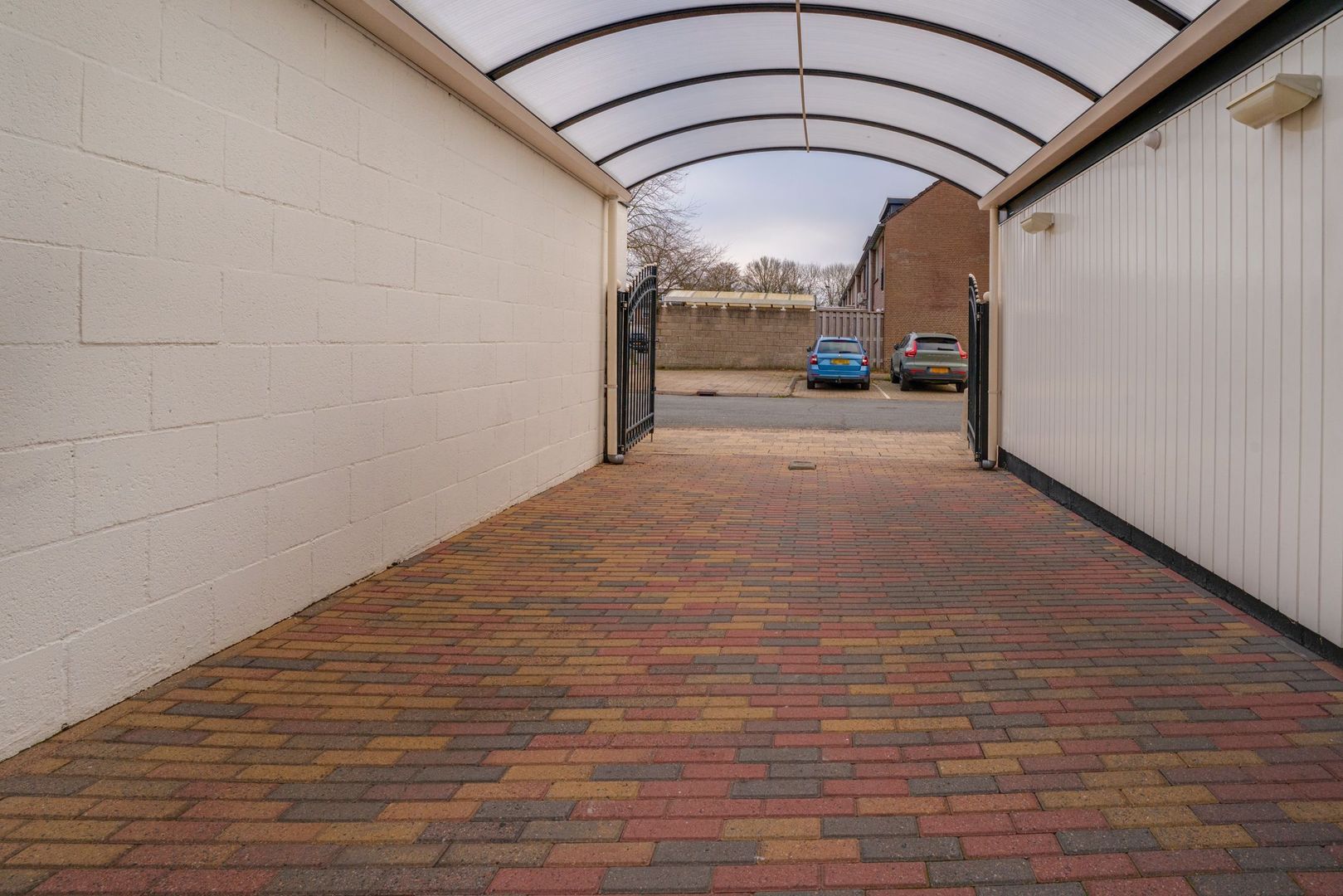 Aan de voorzijde is een carport met een nieuwe overkapping (2024) en een grote schuur. De schuur is geïsoleerd (m.u.v. de vloer) en voorzien van verwarming.