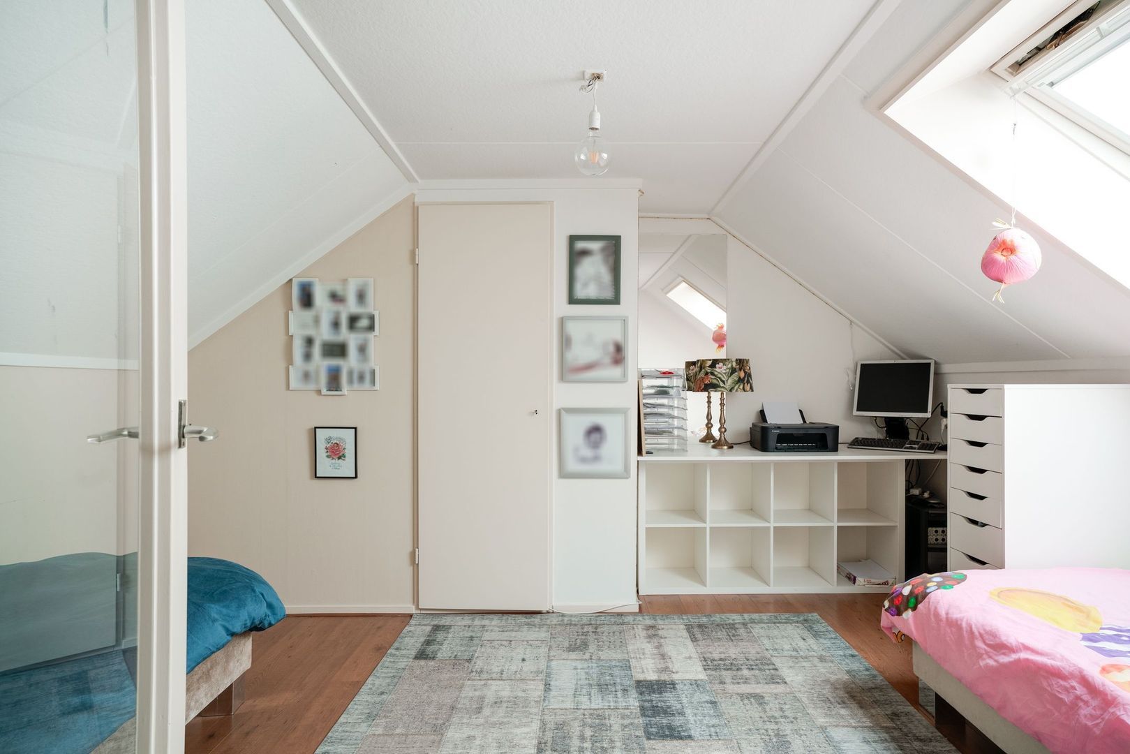Vanuit de overloop is er toegang tot de wasruimte, de 5e slaapkamer en bergruimte achter de knieschotten. In de wasruimte is de opstelling van de wasmachine en de opstelling van de c.v. combiketel (bouwjaar 2016). De ruime 5e slaapkamer heeft een groot dakraam en er is veel bergruimte achter de knieschotten. De slaapkamer is voorzien van een laminaatvloer.