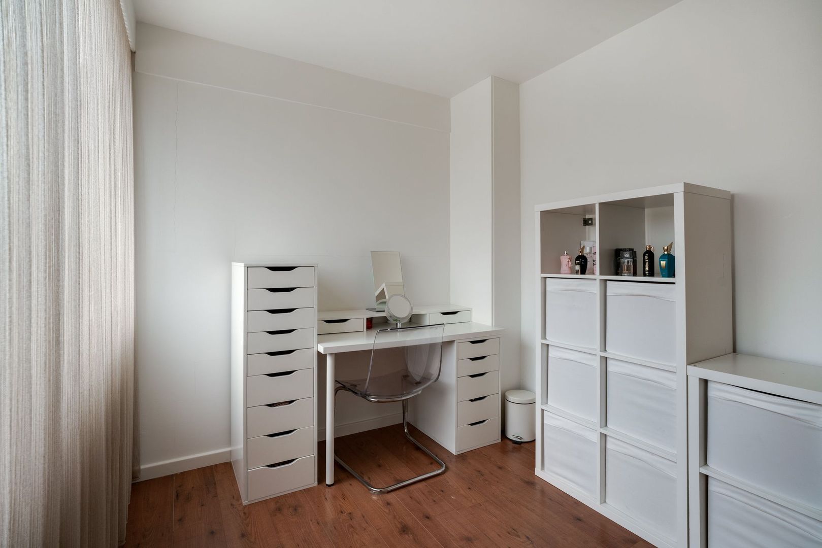 De overloop geeft toegang tot 4 slaapkamers en de badkamer. De moderne badkamer ligt centraal op deze verdieping en is voorzien van een douche, het 2e toilet en de wastafel. Aan de voorzijde zijn 2 slaapkamers en aan de achterzijde is de ouderslaapkamer met hiernaast de 4e slaapkamer. Deze verdieping is voorzien van een laminaatvloer.