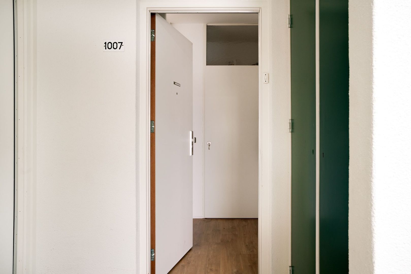 Via de centrale entree met intercom, lift of trappenhuis bereik je de tweede verdieping. De hal van het appartement geeft toegang tot alle vertrekken.