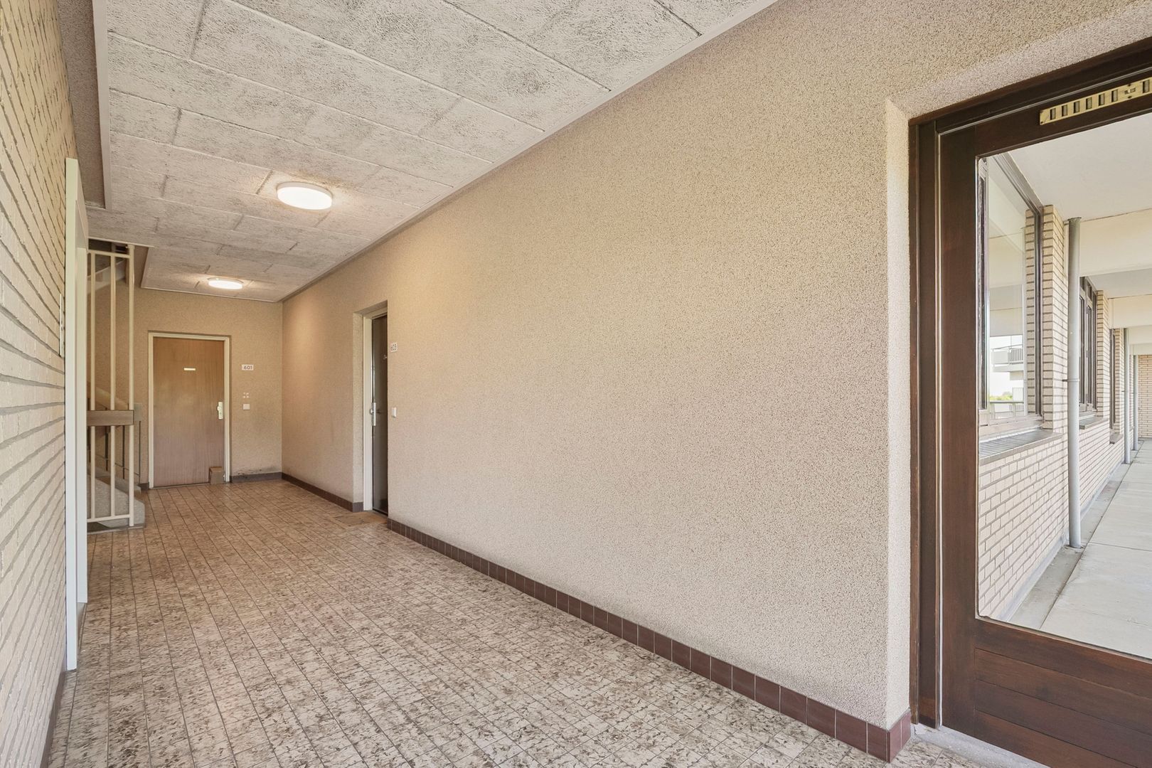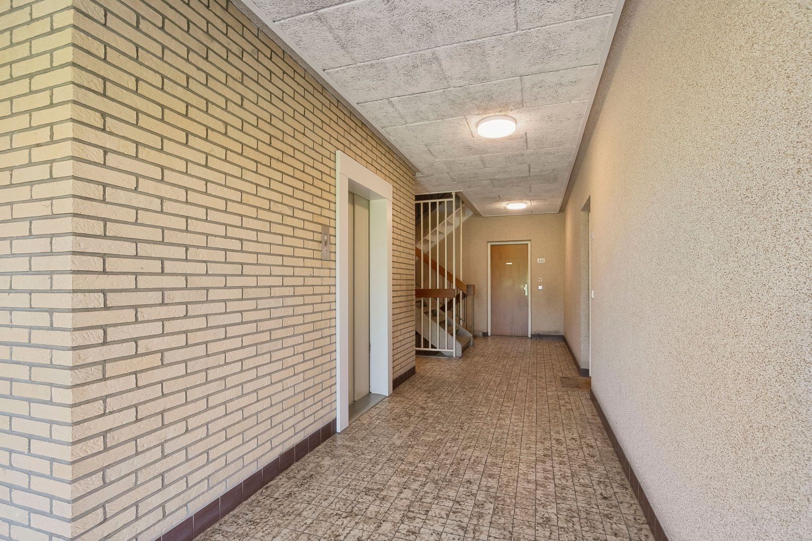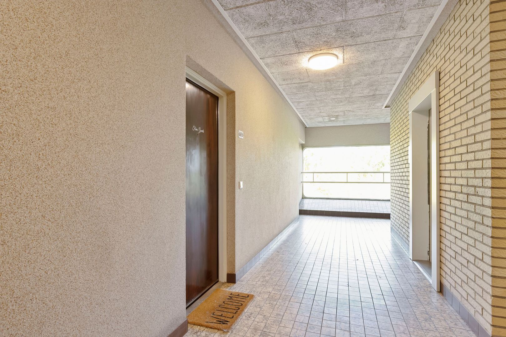 Entree van het complex met bellentableau, de brievenbussen en de ingang naar de bergingen. In de hal hierna kom je in het trappenhuis met de 2 liften.