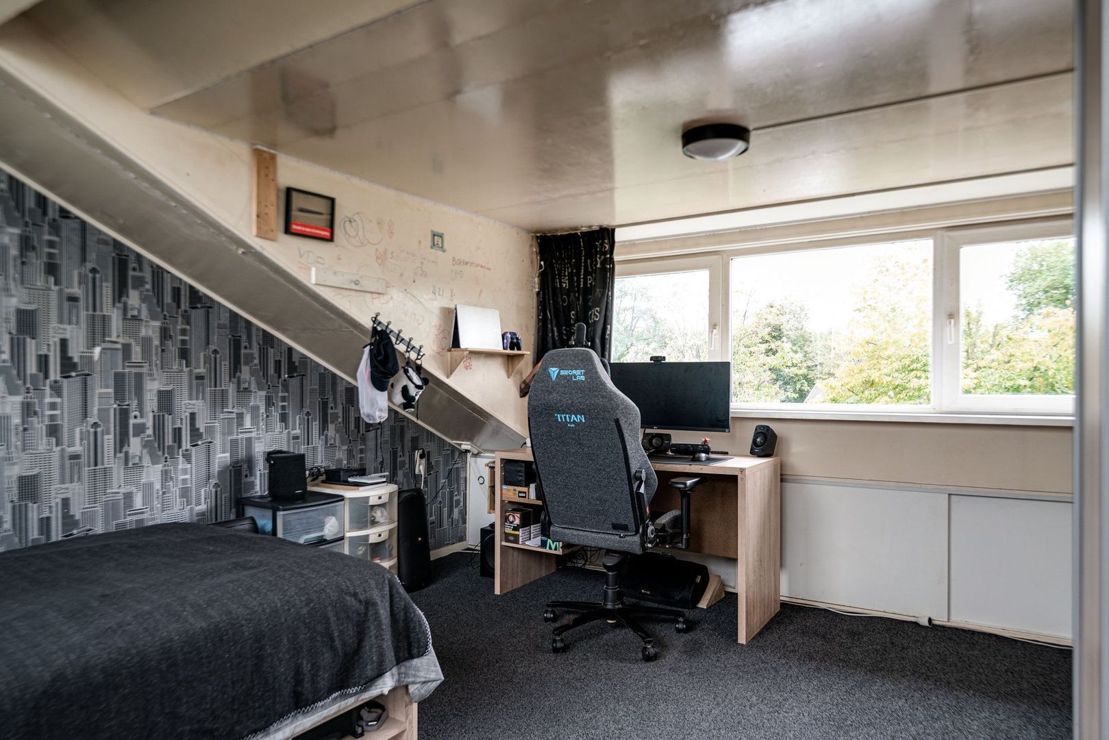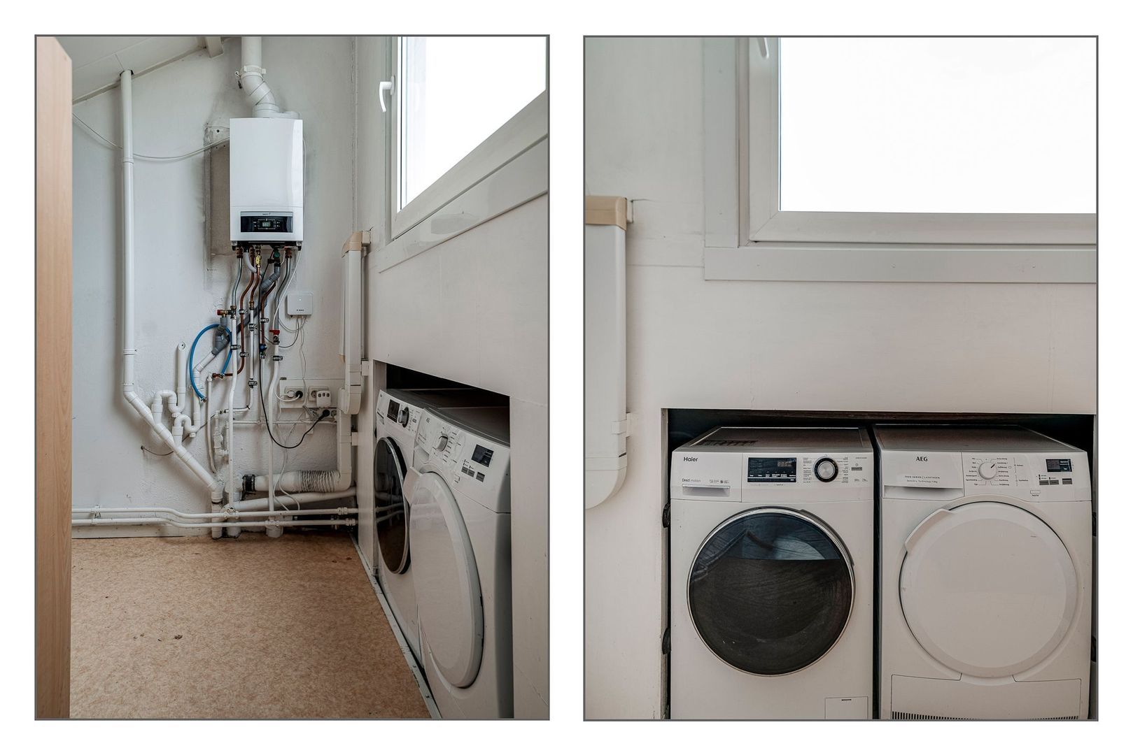 Ruime voorzolder met cv-installatie (Nefit Proline CW4, 2023) en aansluiting voor wasmachine en droger. Daarnaast een royale vierde slaapkamer met dakkapel en bergruimte achter de knieschotten.
