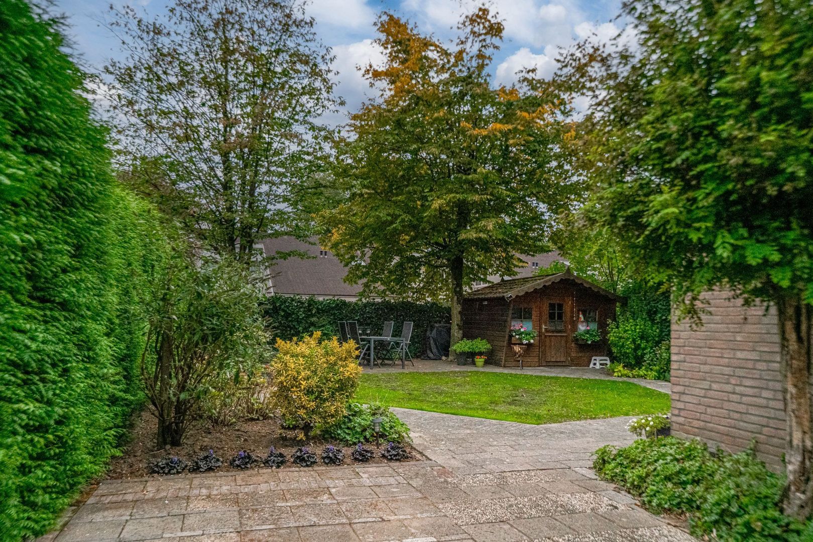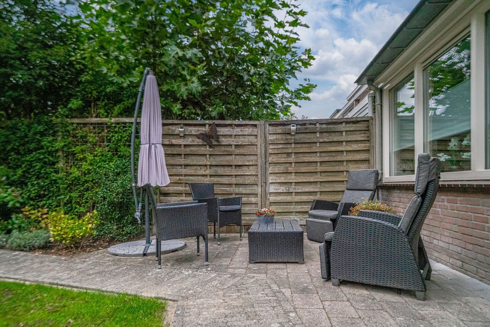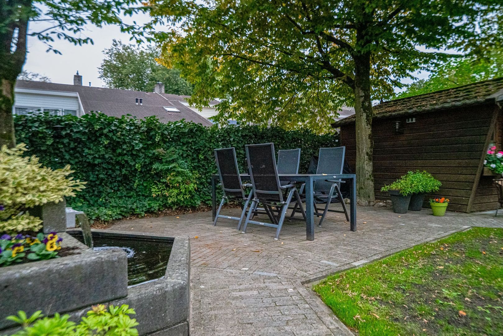 De tuin ligt rondom de woning met aan de achterzijde een groot terras, veel privacy en zonligging op het zuidwesten. Zowel voor als achter in de tuin bevindt zich een ruime berging. De zijtuin biedt veel plek en is zeer geschikt voor het stallen van een caravan of camper.