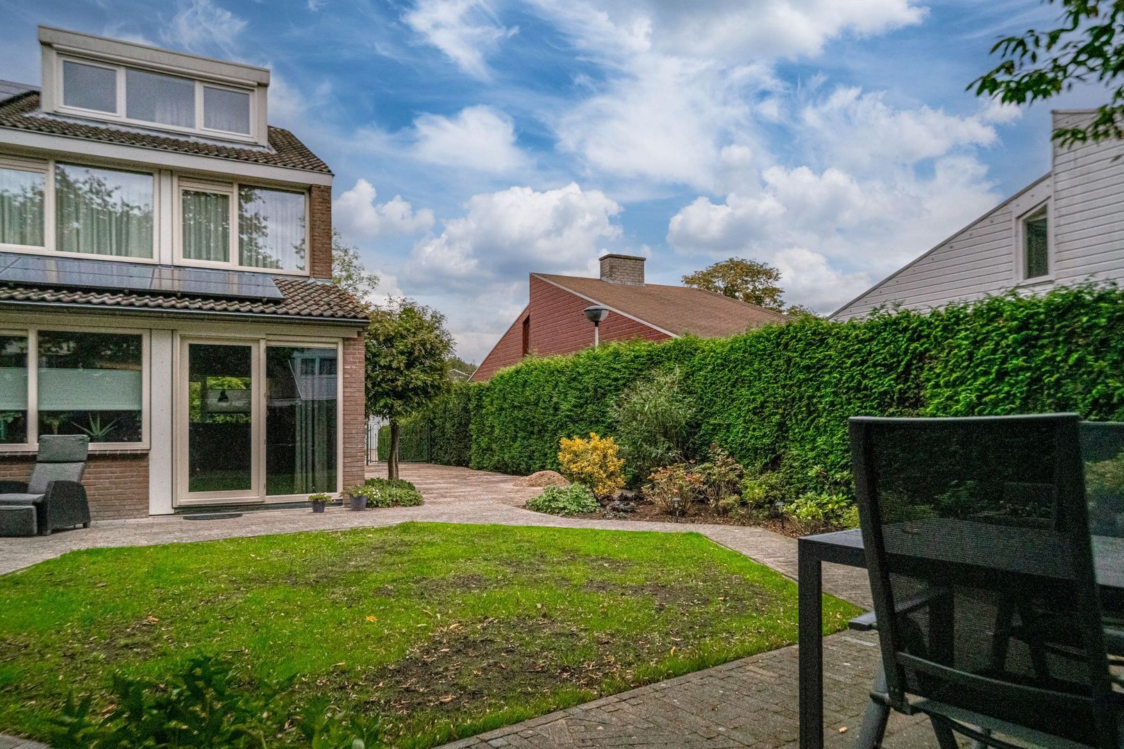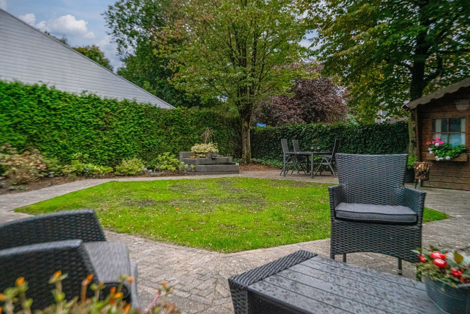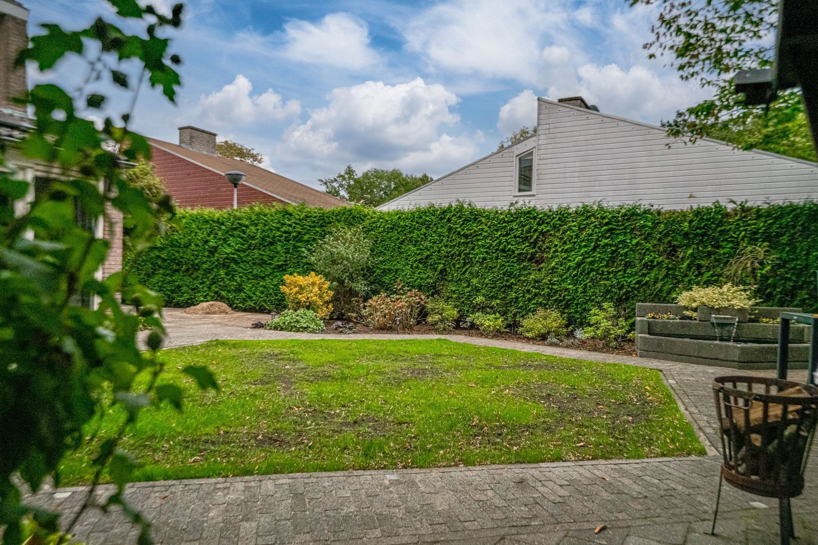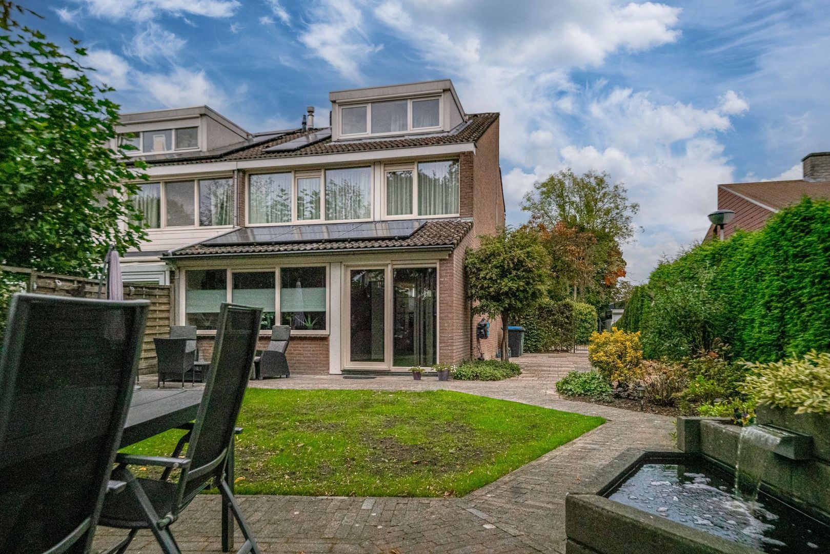 De tuin ligt rondom de woning met aan de achterzijde een groot terras, veel privacy en zonligging op het zuidwesten. Zowel voor als achter in de tuin bevindt zich een ruime berging. De zijtuin biedt veel plek en is zeer geschikt voor het stallen van een caravan of camper.