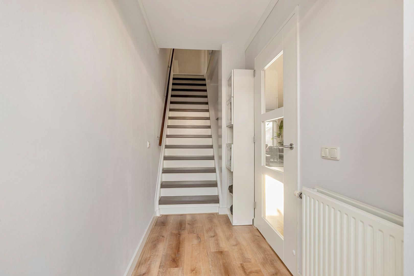 Via een tweede hal bereik je de trapopgang en de achtertuin. De begane grond is voorzien van een neutrale pvc-vloer en een airco.