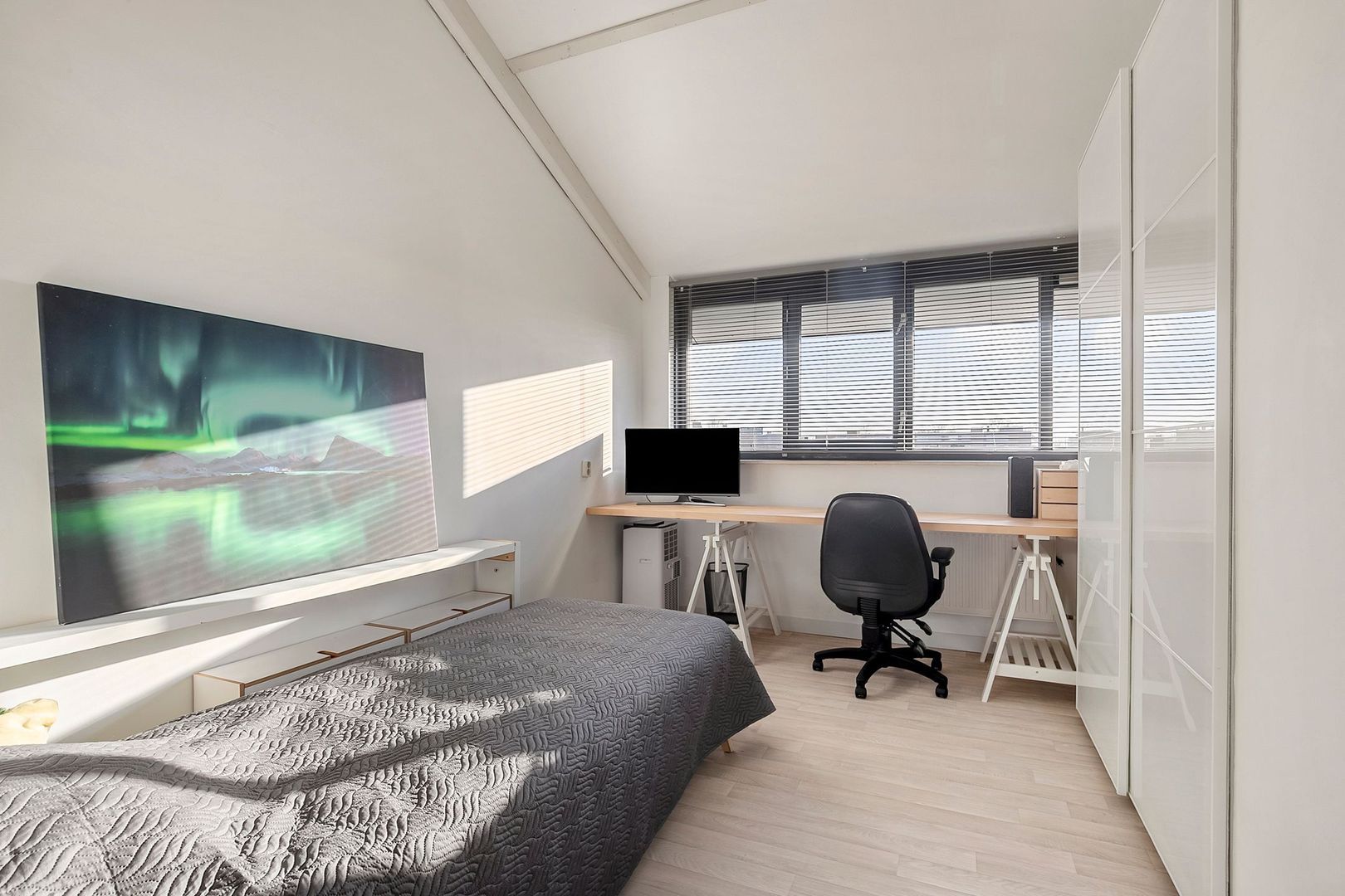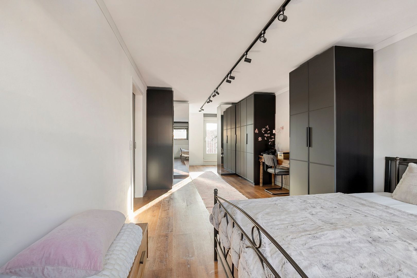 Overloop met toegang tot 2 slaapkamers met een Frans balkon (voorheen drie kamers), en de moderne badkamer. Eén slaapkamer is royaal en biedt ruimte voor een grote kastenwand en eventueel een werkplek. De badkamer is compleet ingericht met een ligbad, een aparte douche, 2e toilet en een dubbele wastafel met meubel. De slaapkamers op deze verdieping zijn afgewerkt met een pvc-vloer.