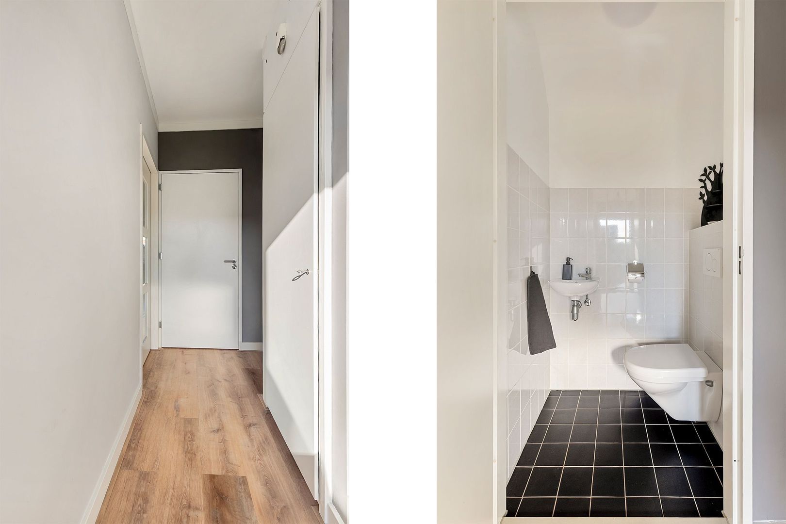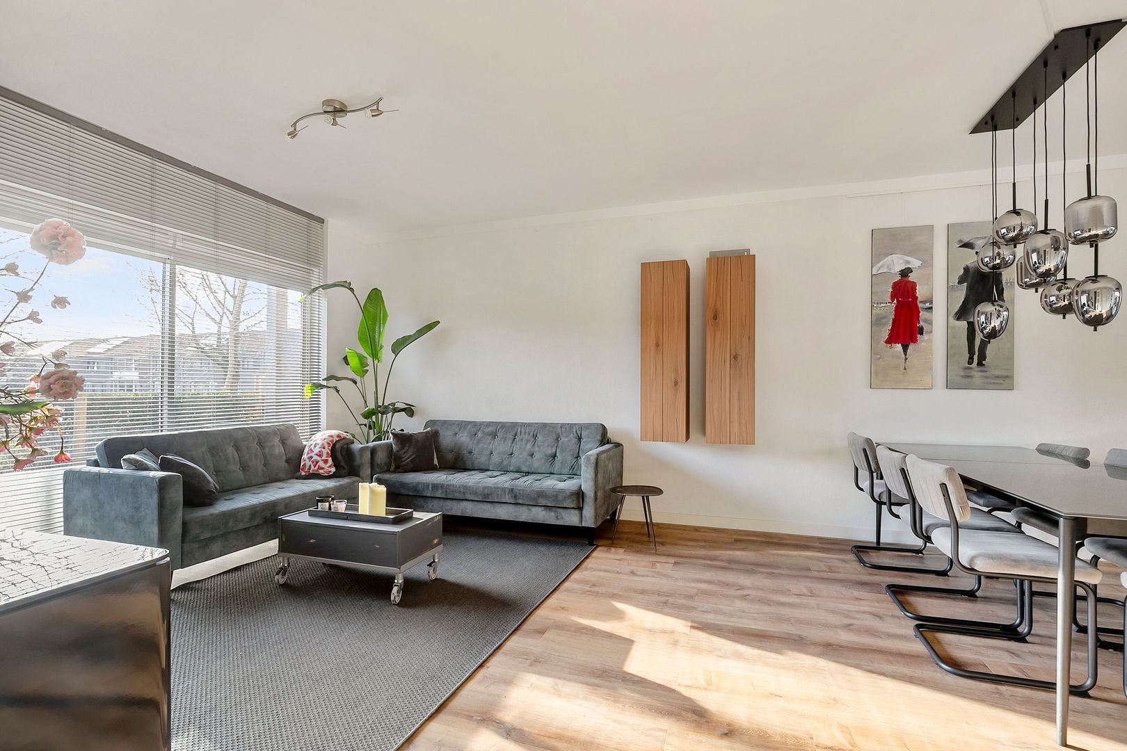 Entree in de hal met modern toilet met fonteintje en de meterkast. Vanuit de hal kom je in de lichte woonkamer die praktisch is ingedeeld met een zithoek aan de voorzijde en een schuifpui naar het terras in de voortuin.