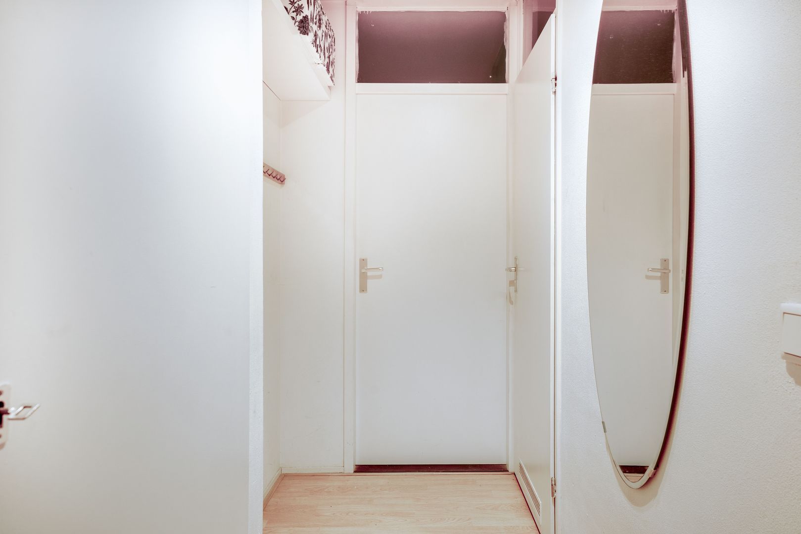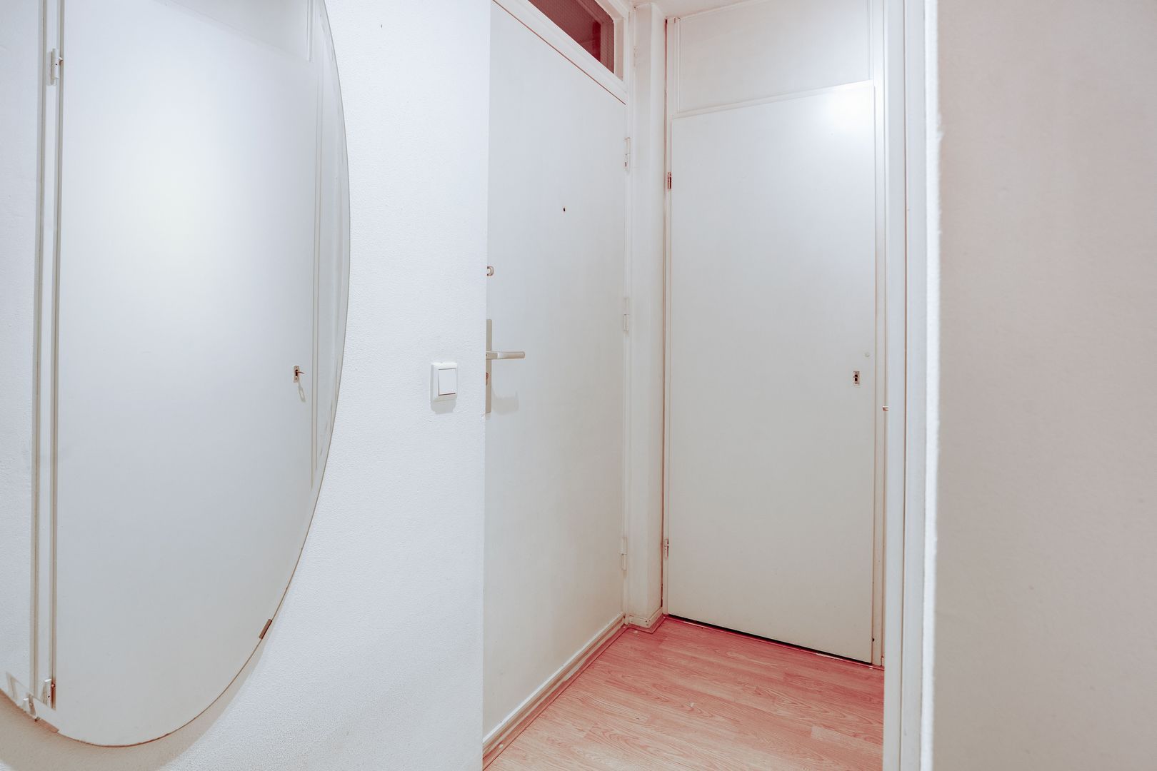 Entree van het appartement is in de hal. Vanuit deze hal kom je in alle woonruimtes. Er is een ruime slaapkamer met een speelse, schuine muur waar je kasten kunt plaatsen. De badkamer is voorzien van een douchehoek, het toilet, de wastafel en de wasmachine aansluiting.