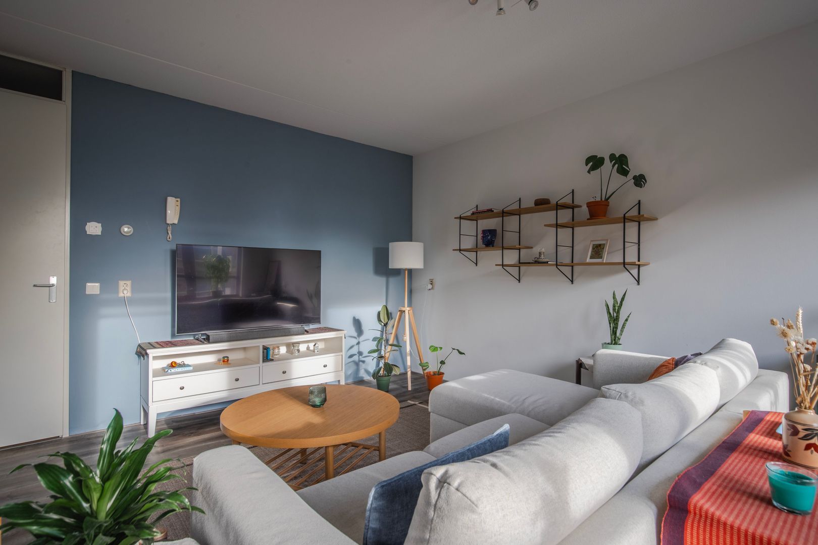 • De woonkamer en beide slaapkamers zijn voorzien van laminaatvloeren;