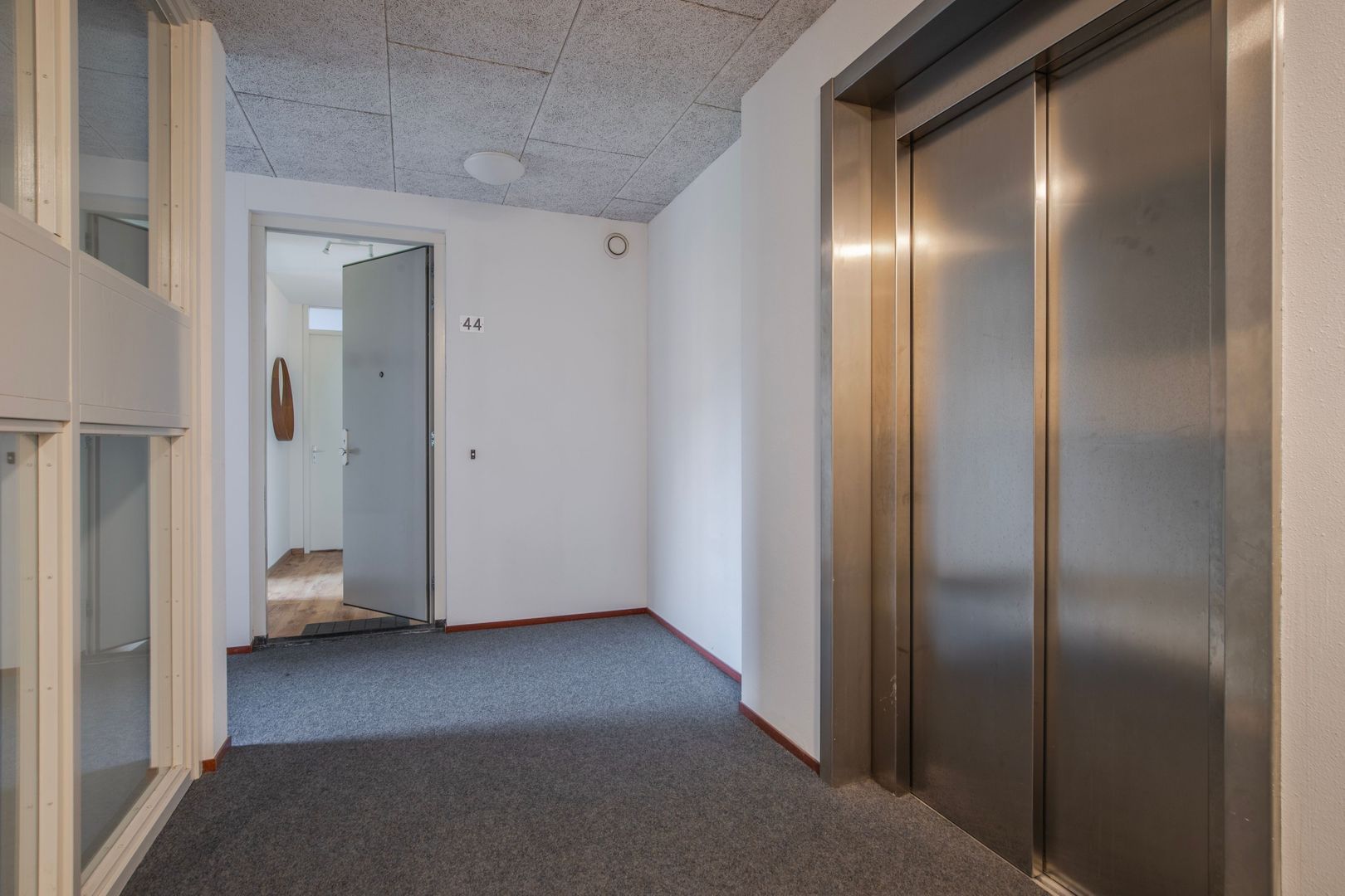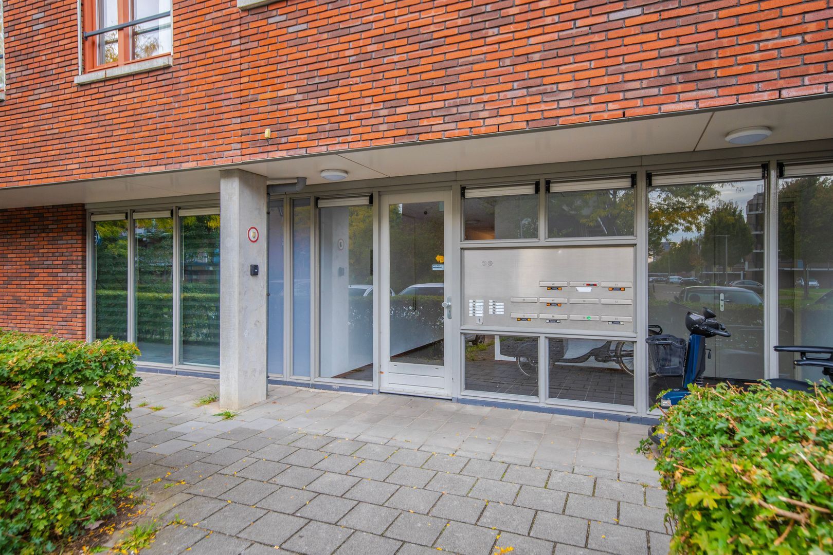 Entree van het complex middels een afgesloten schuifdeur met hiernaast de bellentableau en de brievenbussen. U kunt naar de verdiepingen met de lift of het trappenhuis. De bergingen bevinden zich op de begane grond.