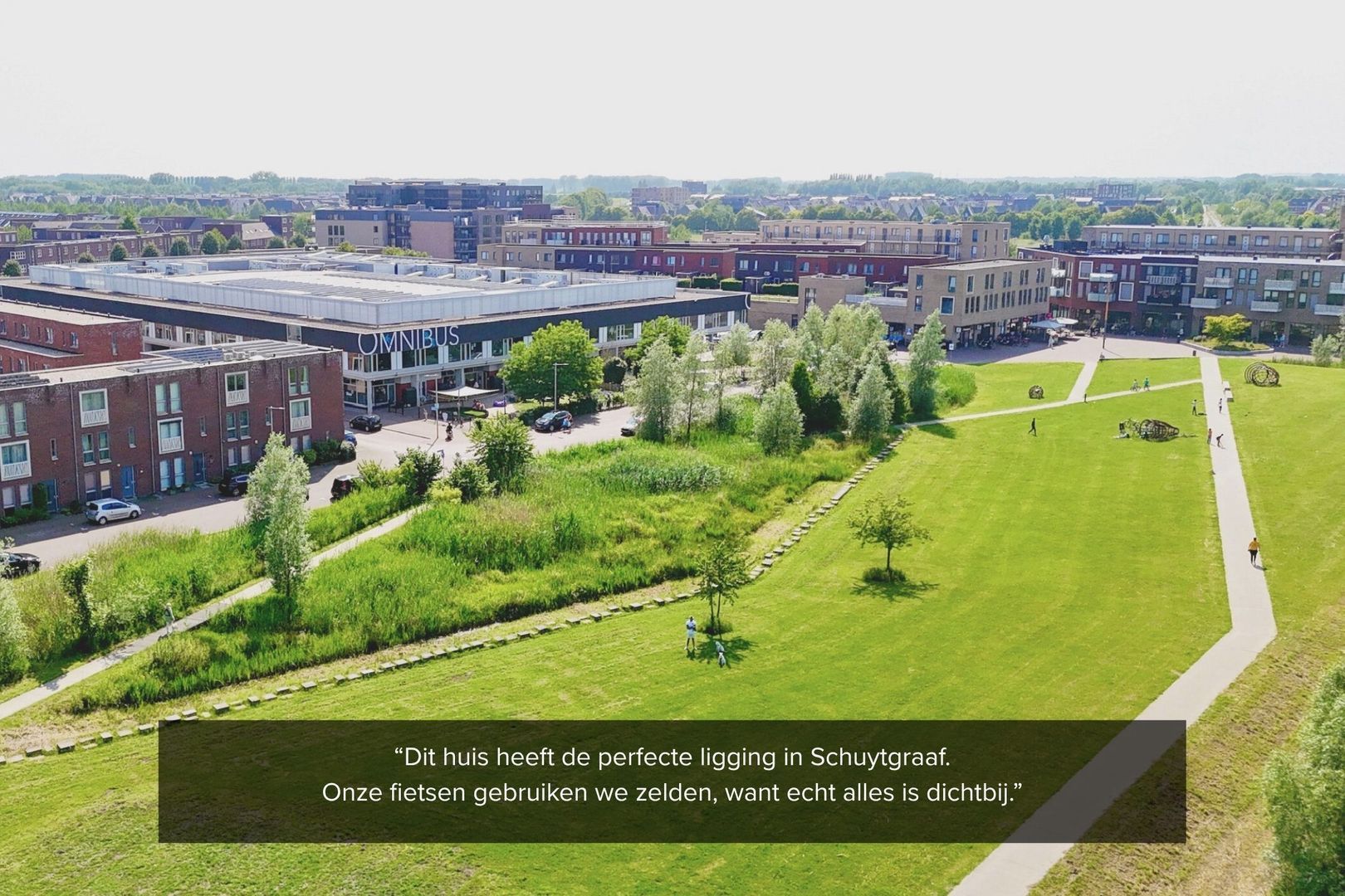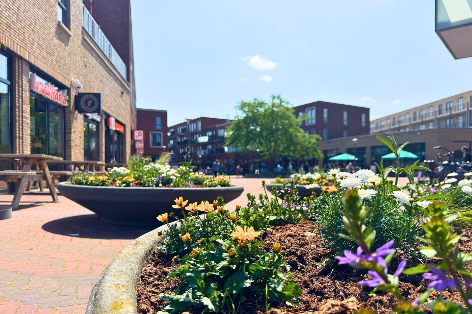 Buiten zit je in het kloppende hart van de wijk, met werkelijk alles binnen handbereik: winkelcentrum, trein, basisscholen, kinderopvang, zorgcentrum, internationale school, middelbare school. Alles binnen 200 meter.