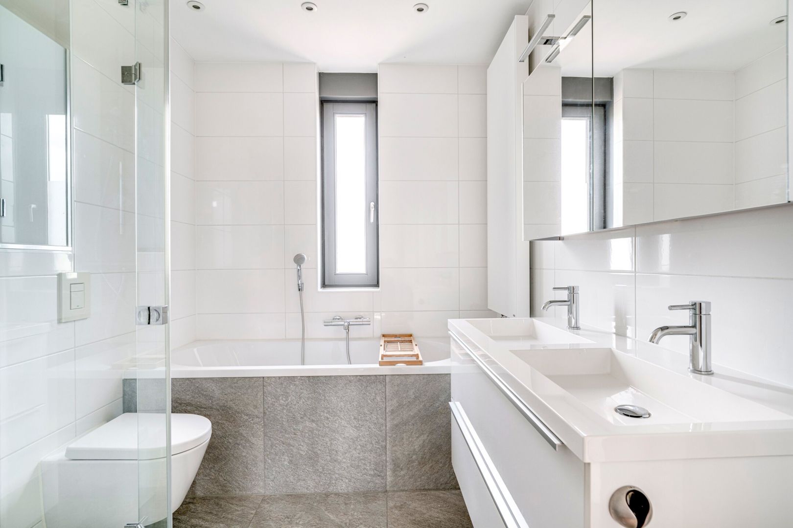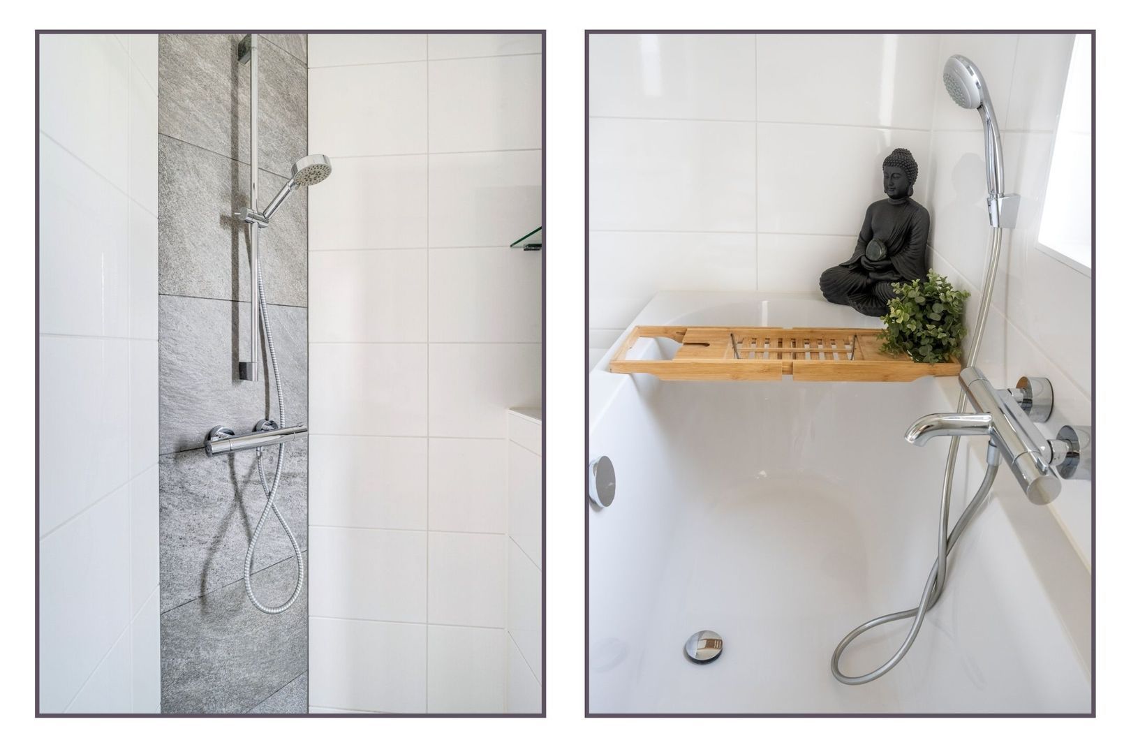 - Twee luxe badkamers met ligbad, inloopdouche, dubbele wastafels en toiletten