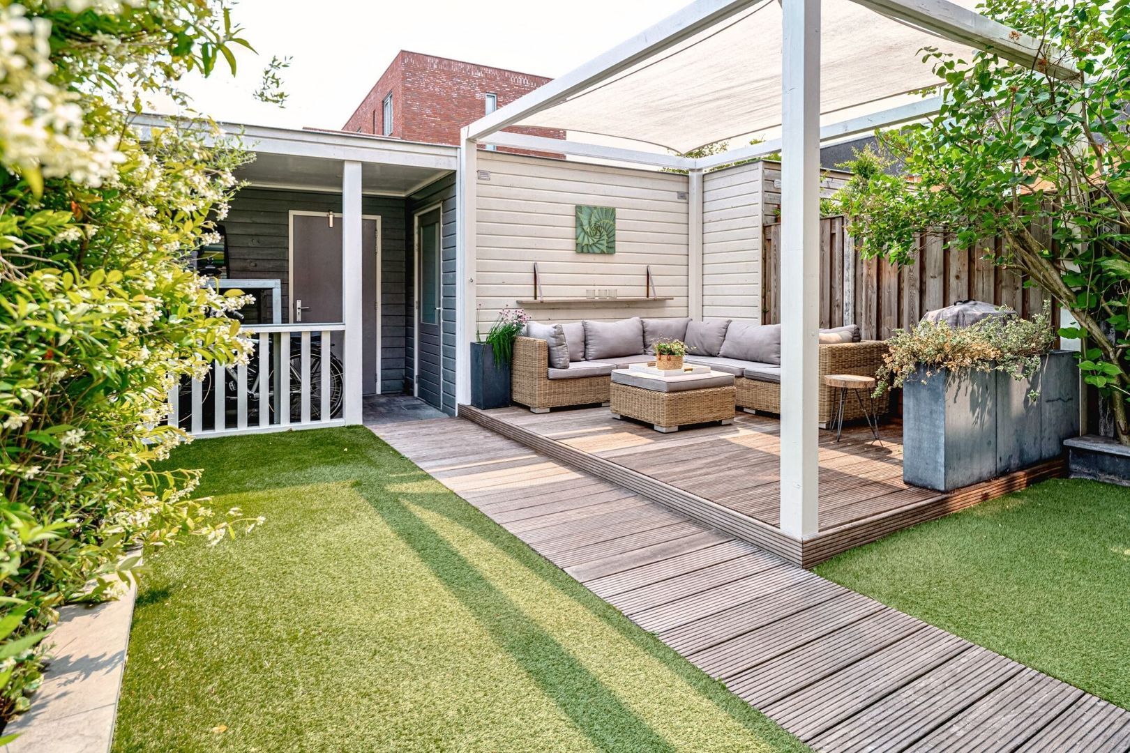 - Achtertuin op het zuiden met uitgebouwde schuur en vaste deur