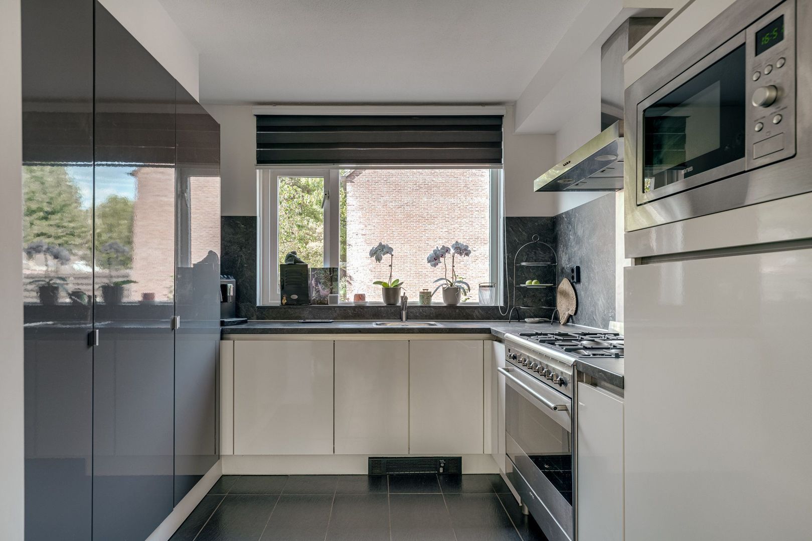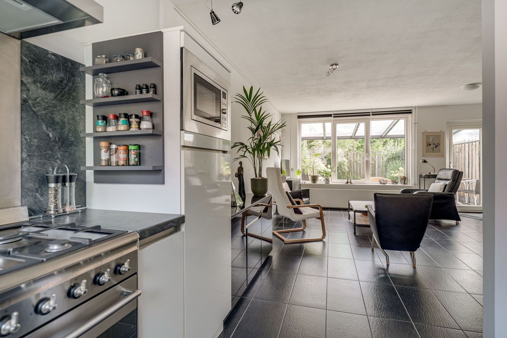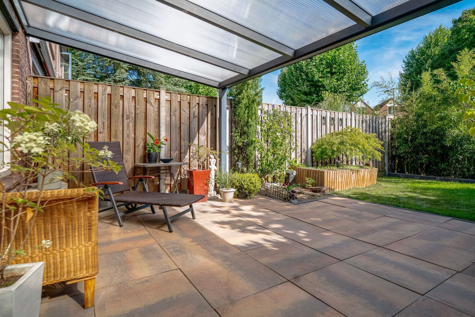 Via de voortuin, voorzien van afsluitbaar hekwerk en een stenen berging, bereik je de entree. In de hal bevinden zich het moderne toilet met fontein, de meterkast en de trapopgang. De tuingerichte woonkamer is licht en ruim en heeft een plavuizenvloer. De open keuken aan de voorzijde is modern uitgevoerd met hoogglansafwerking, greeploze kasten, volop bergruimte en diverse inbouwapparatuur, waaronder een 6-pits gasfornuis met oven, vaatwasser (2020), magnetron, koelkast en vriezer. De woonkamer biedt toegang tot de zonnige achtertuin op het zuiden. Onder de aluminium veranda met ingebouwde verlichting kun je zowel overdag als ’s avonds heerlijk vertoeven.