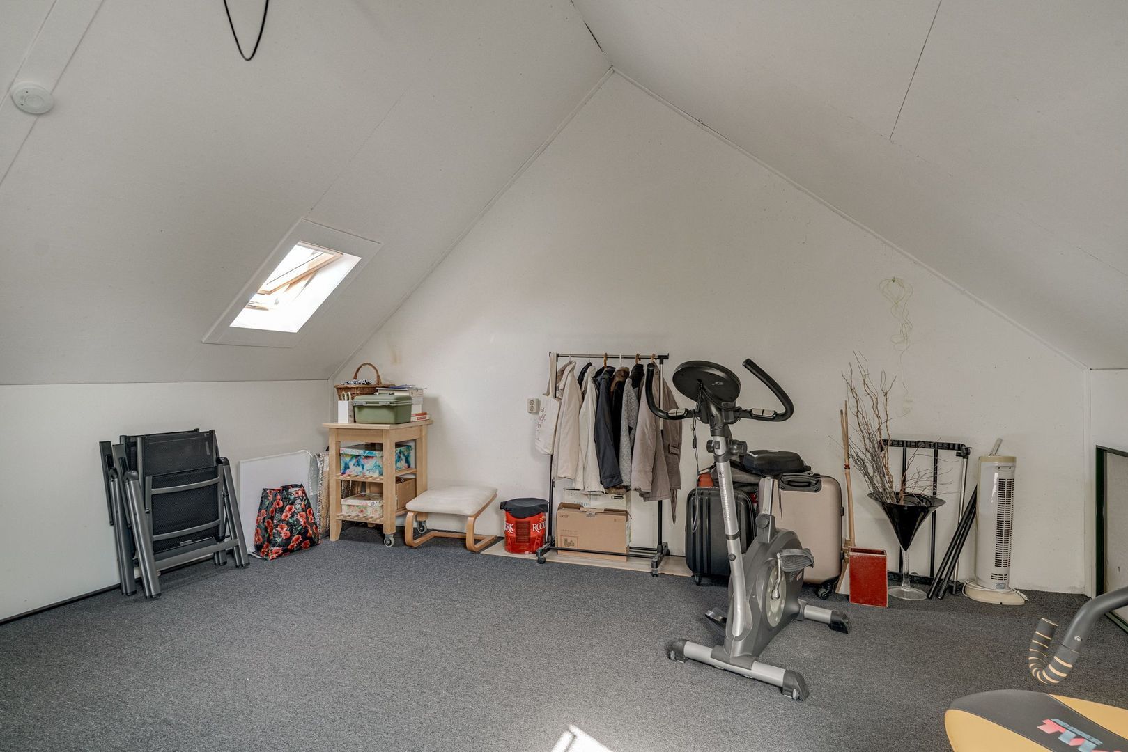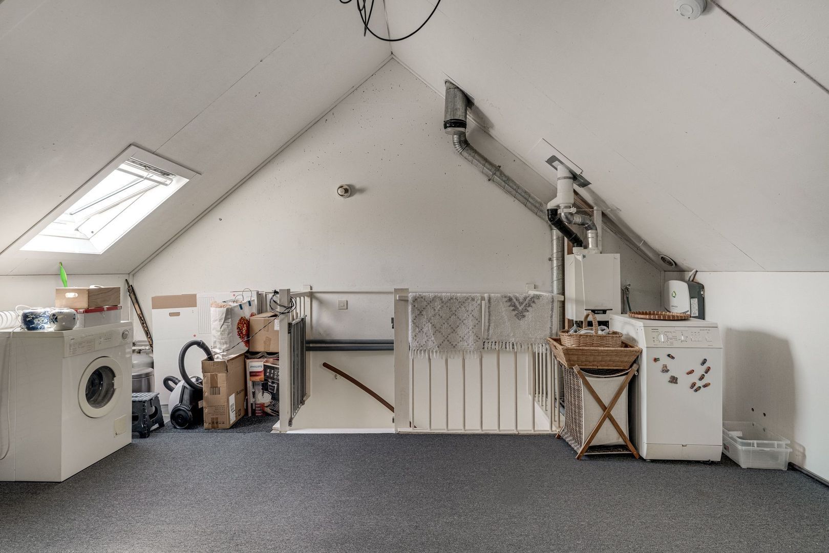 De ruime zolderverdieping is bereikbaar via een vaste trap en biedt volop mogelijkheden. Met een simpele aanpassing (het plaatsen van een radiator) creëer je hier eenvoudig een vierde slaapkamer. Daarnaast zijn er praktische bergruimtes achter de knieschotten, een wasmachineaansluiting en de CV-installatie (Intergas, 2014).