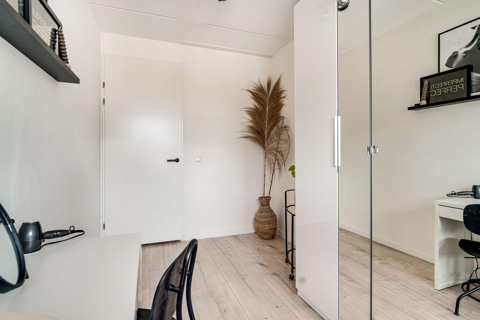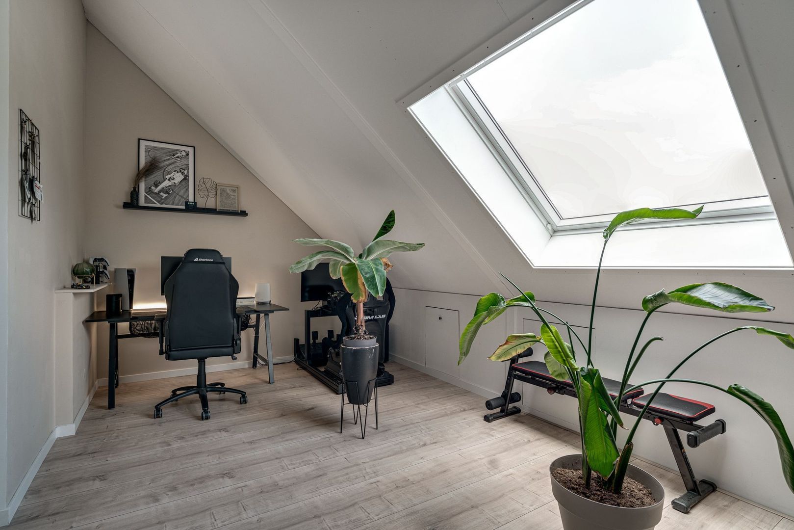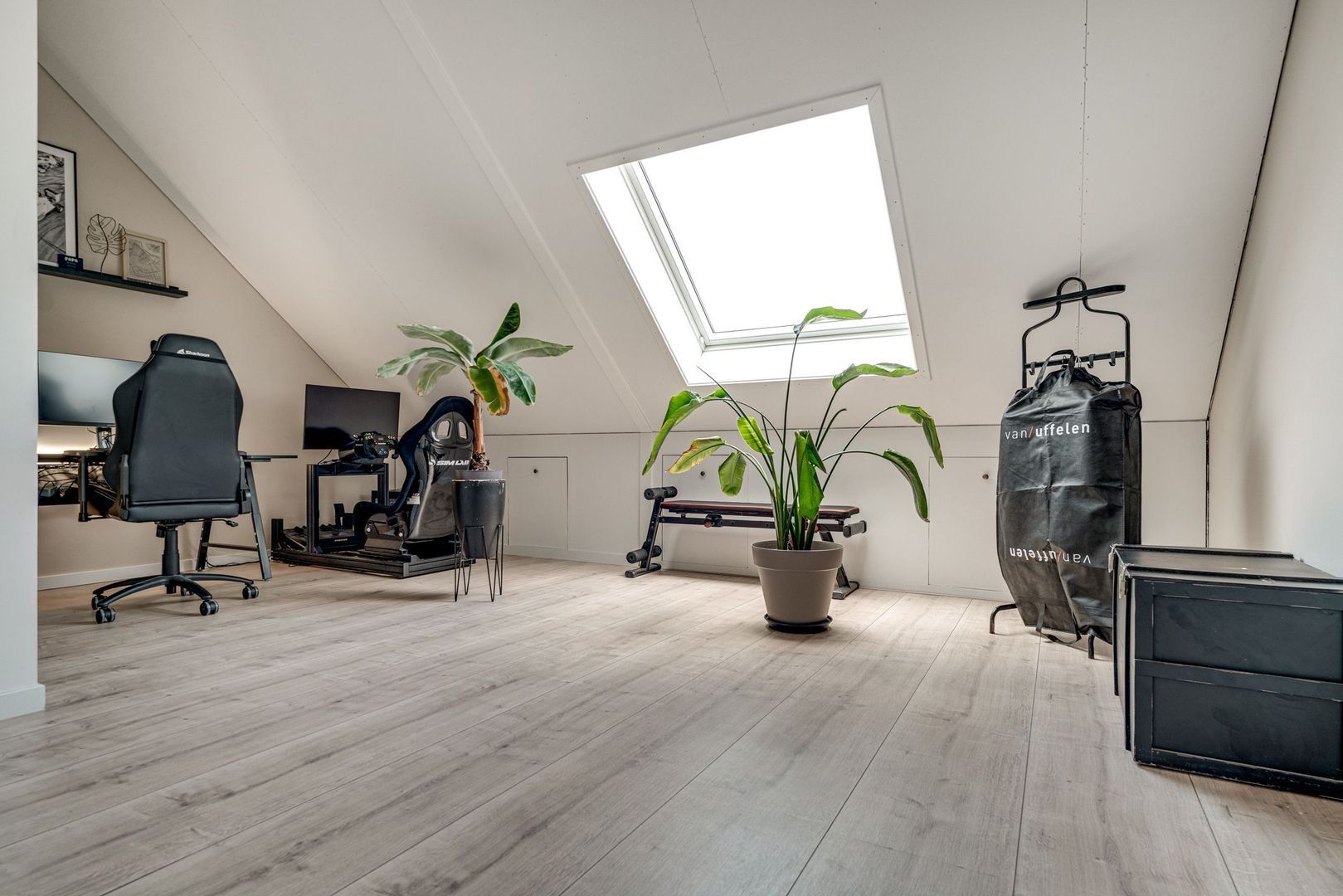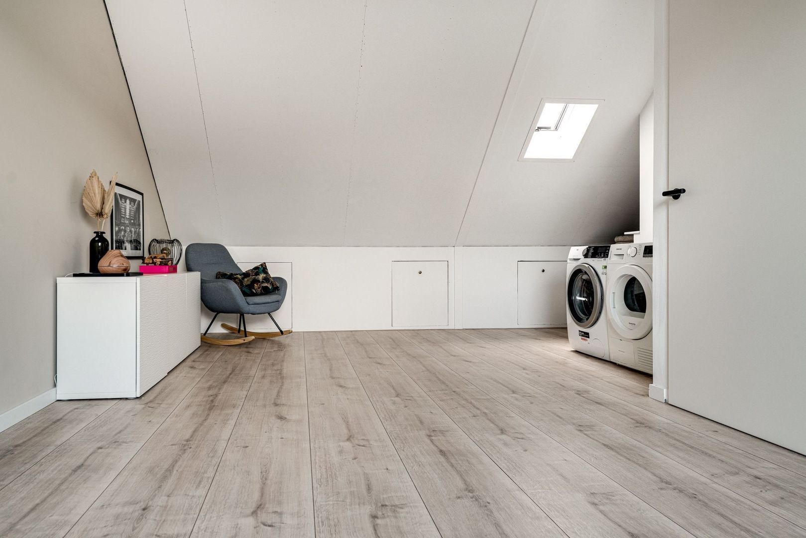 Hier is een royale 4e kamer aanwezig welke nu in gebruik is als werkkamer in combinatie met de wasruimte. Door de aanwezigheid van 2 dakramen zorgt ervoor dat dit ook gebruikt kan worden als een extra 4e slaapkamer. Tevens is hier veel bergruimte aanwezig. Deze verdieping is voorzien van een laminaatvloer.