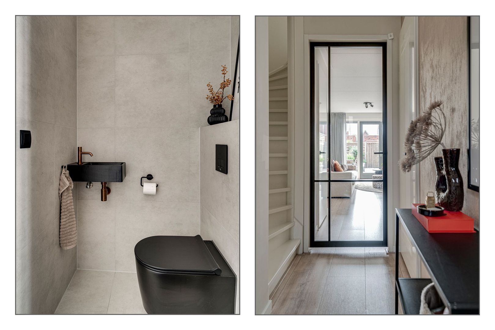 • De begane grond is voorzien van vloerverwarming en de beide verdiepingen hebben radiatoren met de verwarmingsbuizen uit de muur i.p.v. de vloer;