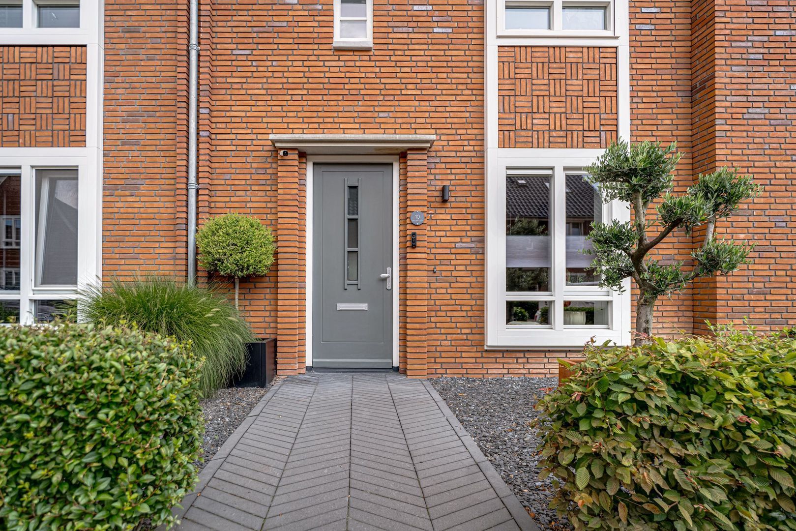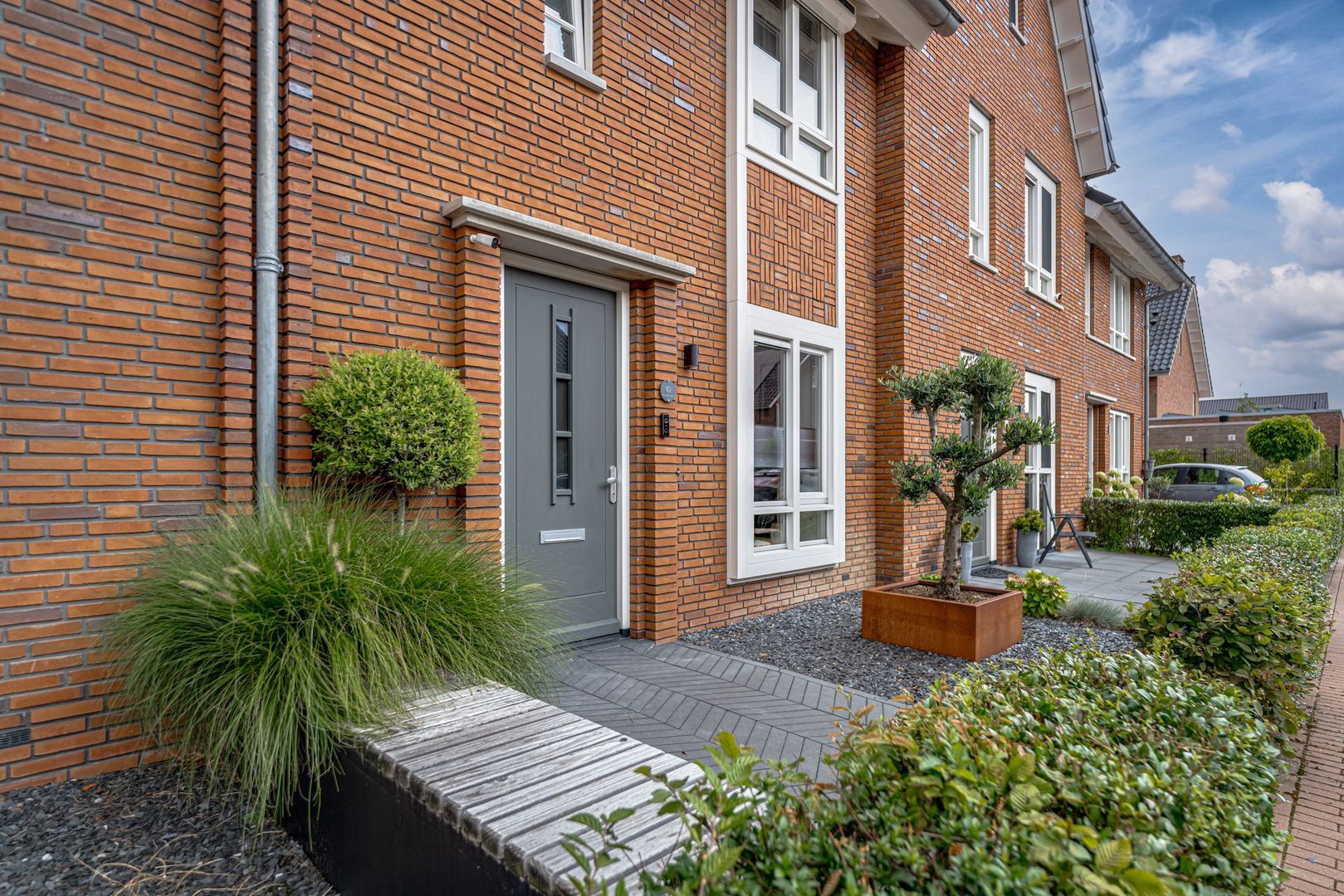 • De fraai aangelegde tuin heeft een groot terras, een vrijstaande berging en een poort naar het achtergelegen pad;