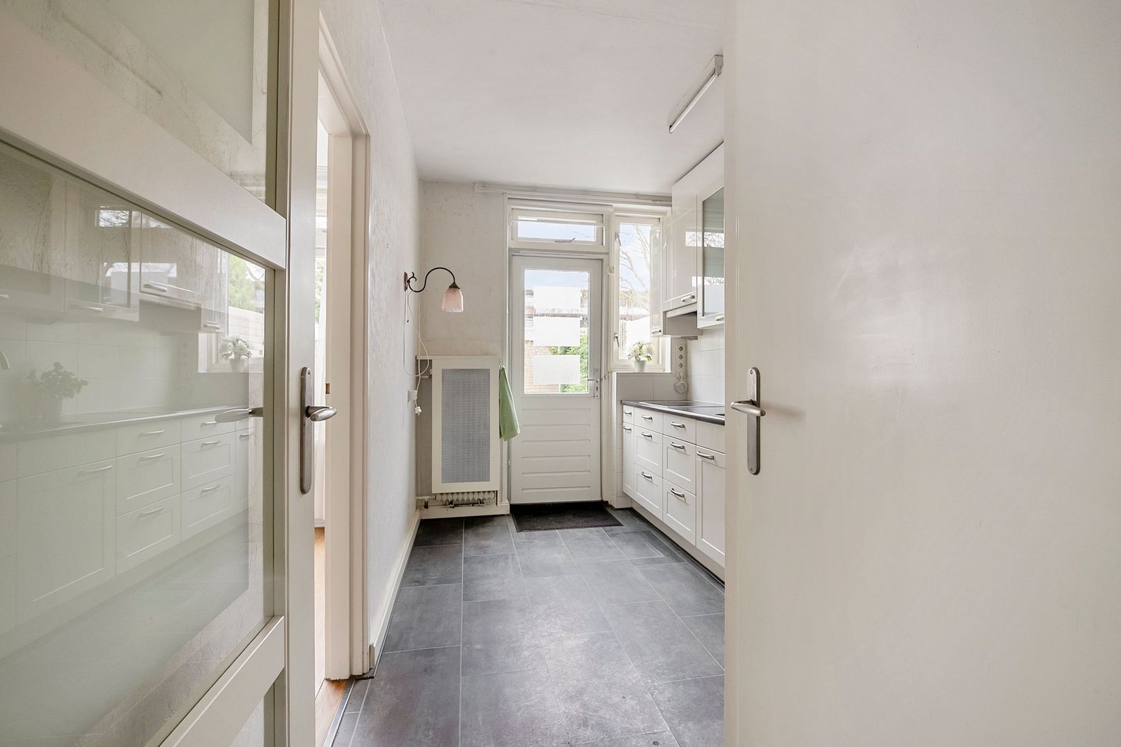 Entree in de hal, de hal is voorzien van het toilet met fonteintje, meterkast, trapopgang, de woonkamer en de keuken. De keuken is nagenoeg dicht te noemen en voorzien van een recht keukenblok met diverse inbouwapparatuur zoals een inductiekookplaat met afzuigkap, een koelkast en een combimagnetron. De keuken geeft toegang tot de tuin.
