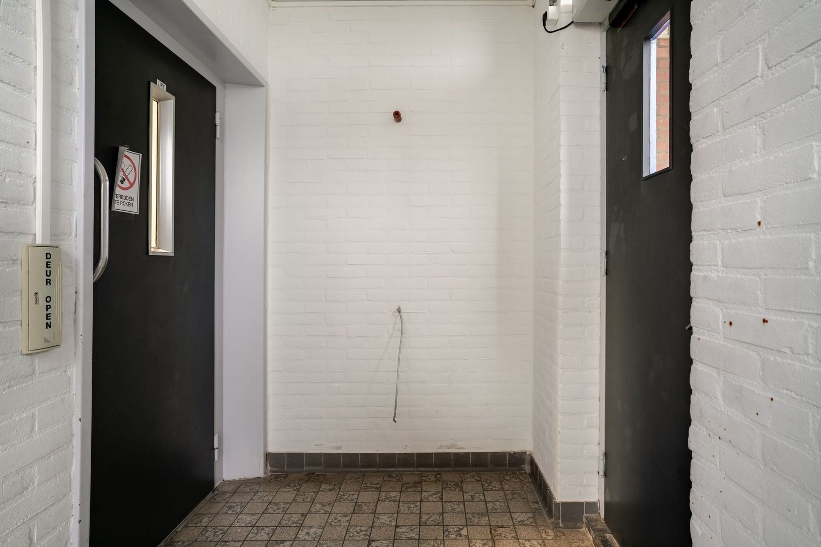 Afgesloten entree van het complex met een bellentableau en de brievenbussen. Vanuit de centrale hal is er toegang tot het trappenhuis, de lift en de bergingen.