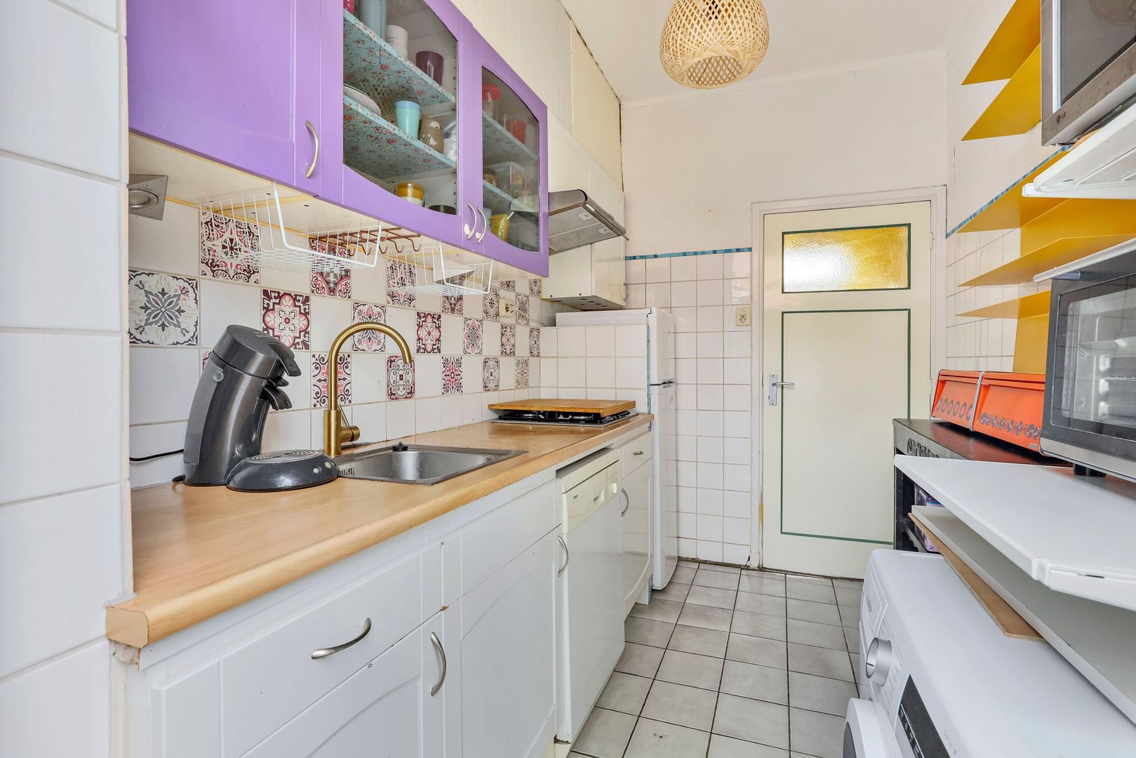 De dichte keuken heeft een praktische indeling en is voorzien van diverse apparatuur.