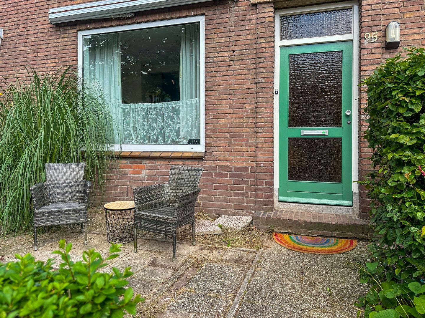 De royale en zonnige tuin op het noorden is een van de grote pluspunten van deze woning. Door de diepte is er altijd wel een plekje in de zon of schaduw te vinden. De tuin biedt voldoende ruimte voor meerdere zitplekken of speelplekjes. Verder is er een praktische stenen berging en een achterom aanwezig.