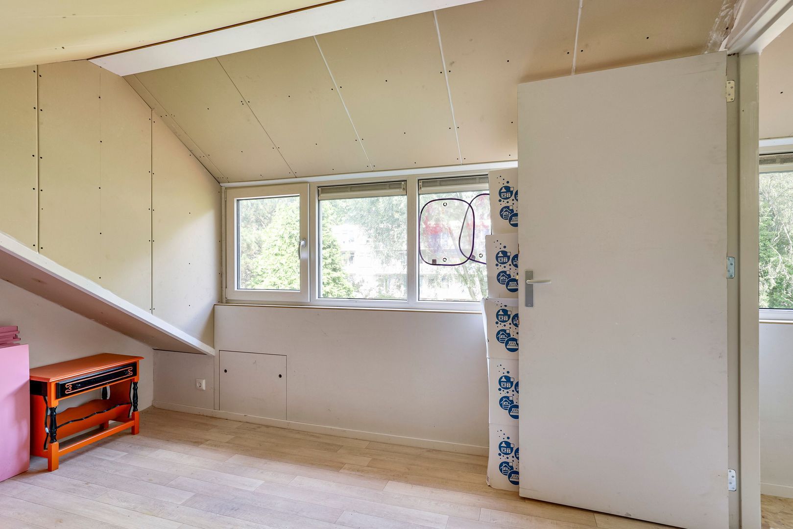 Via een vast trap bereikt u de voorzolder en de 4e kamer. Deze voorzolder en 4e kamer is het gevolg van een nokverhoging met dakkapel, waardoor er extra woonruimte is gecreëerd. Al met al een geweldige toevoeging in ruimte.
