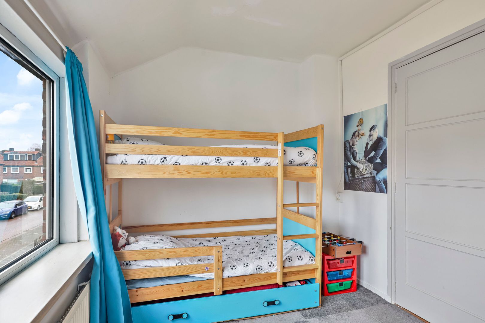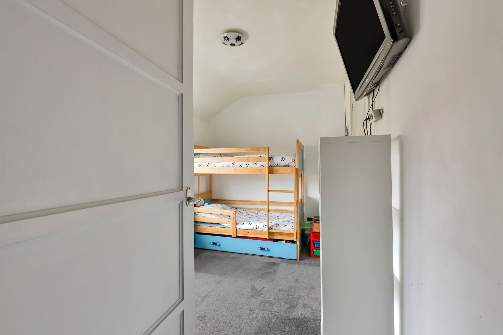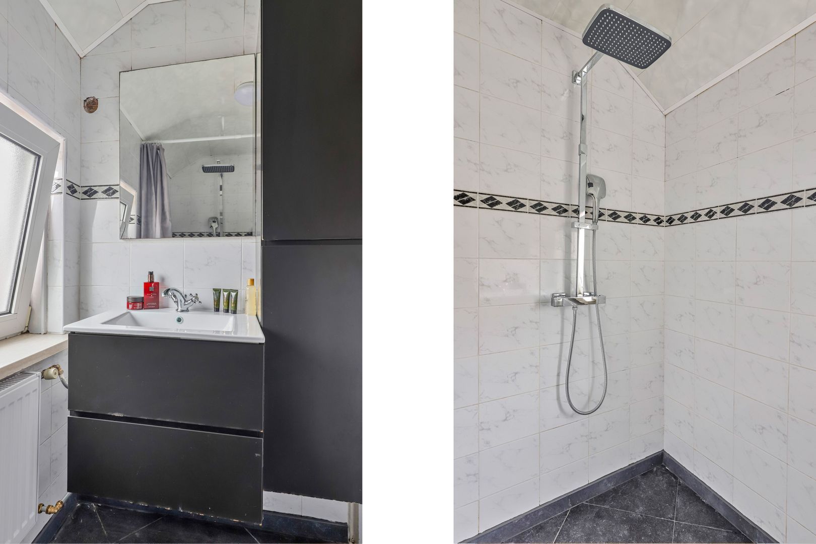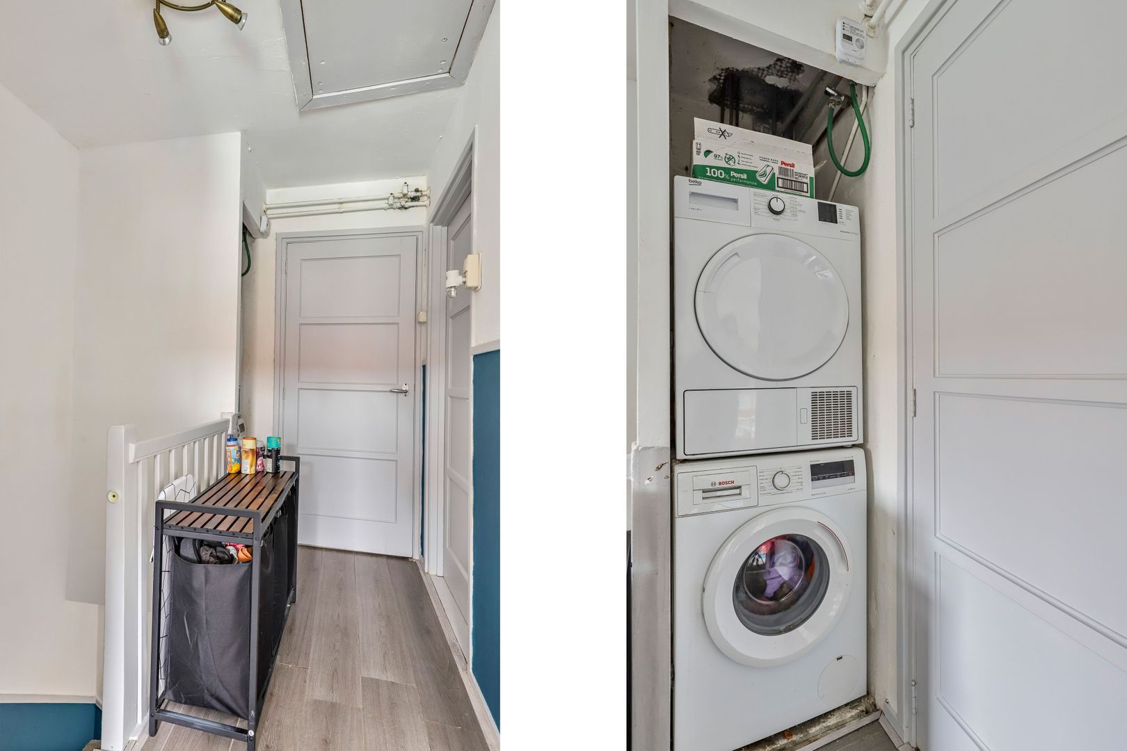 Vanuit de trap kom je op de overloop, hier is een bergkast waar zich de aansluitingen bevinden van de wasmachine en de droger. Er zijn 3 slaapkamers aanwezig en aan de voorzijde is de badkamer met douche en wastafel.