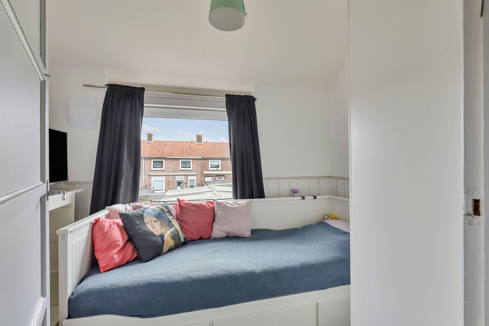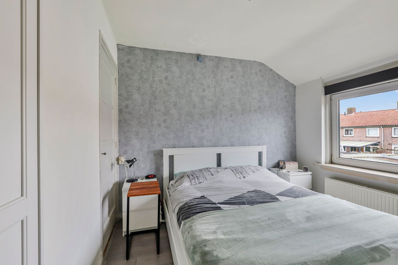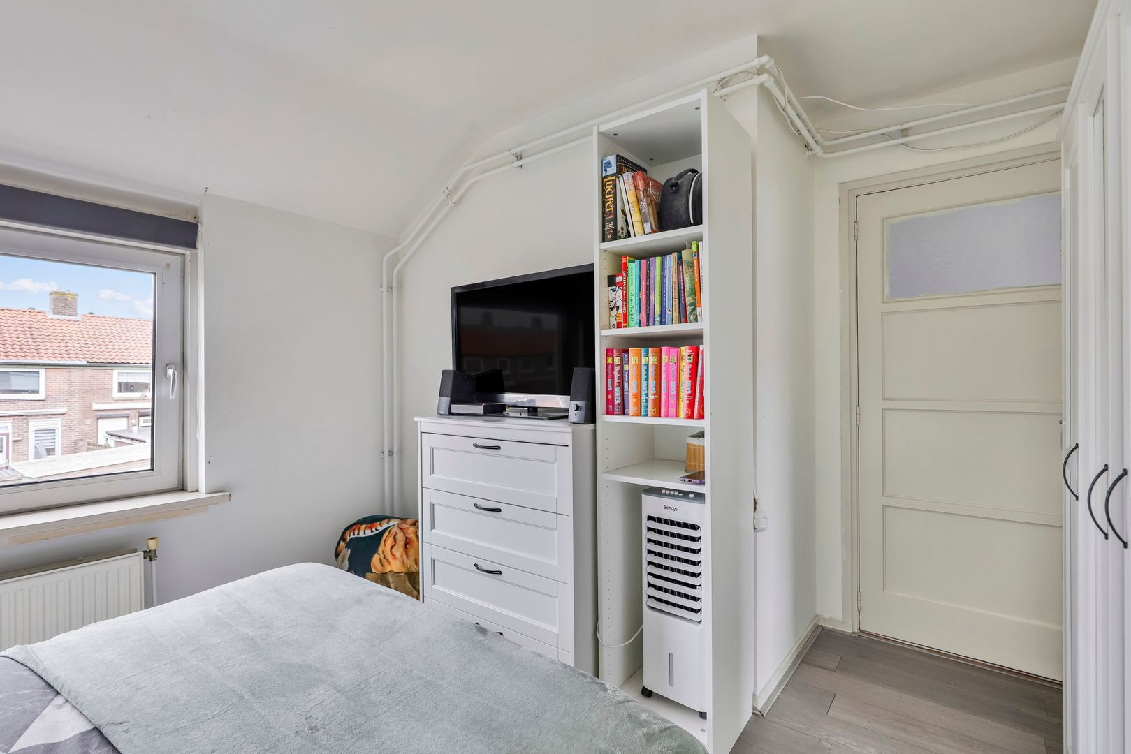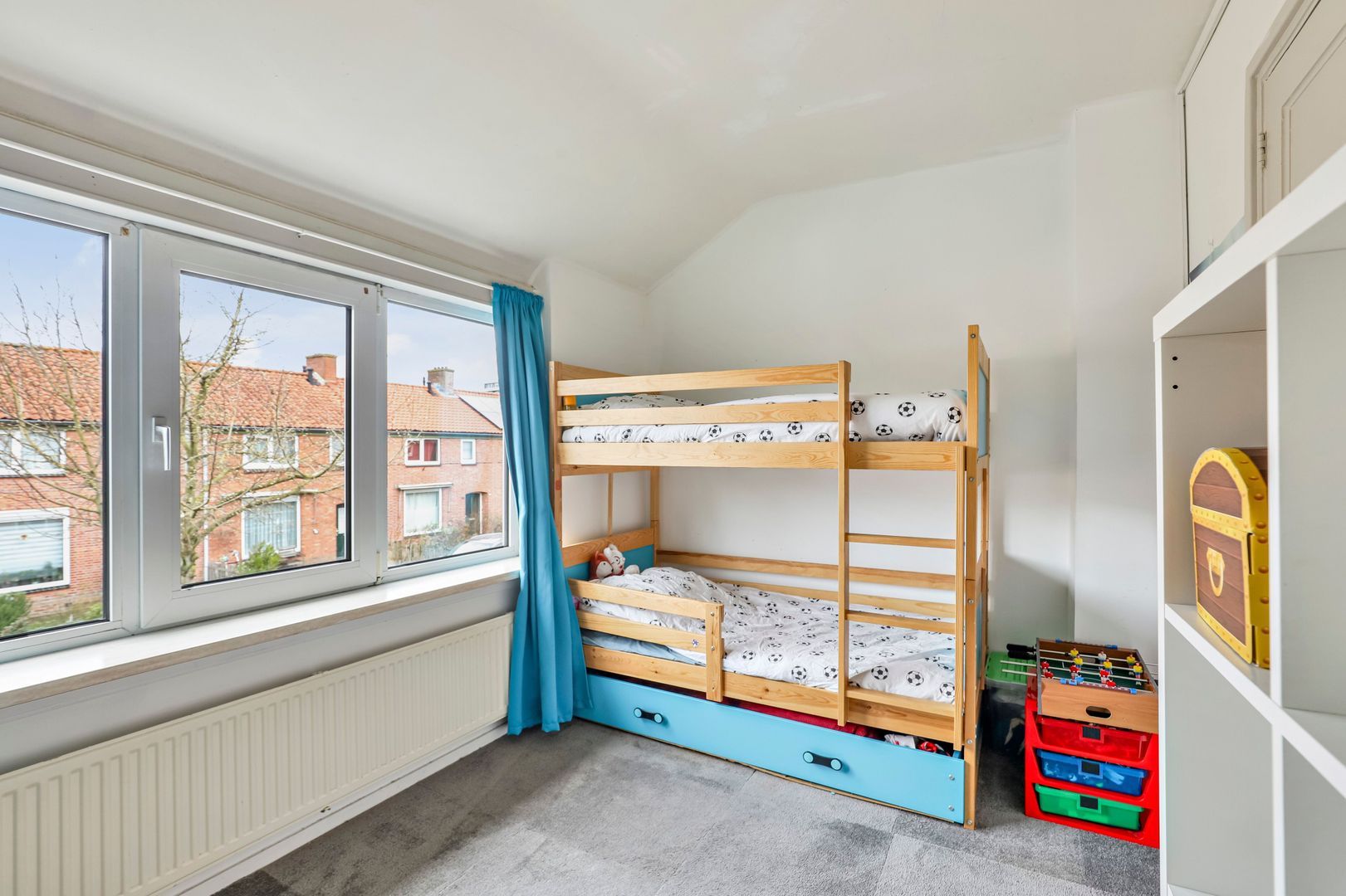 Vanuit de trap kom je op de overloop, hier is een bergkast waar zich de aansluitingen bevinden van de wasmachine en de droger. Er zijn 3 slaapkamers aanwezig en aan de voorzijde is de badkamer met douche en wastafel.