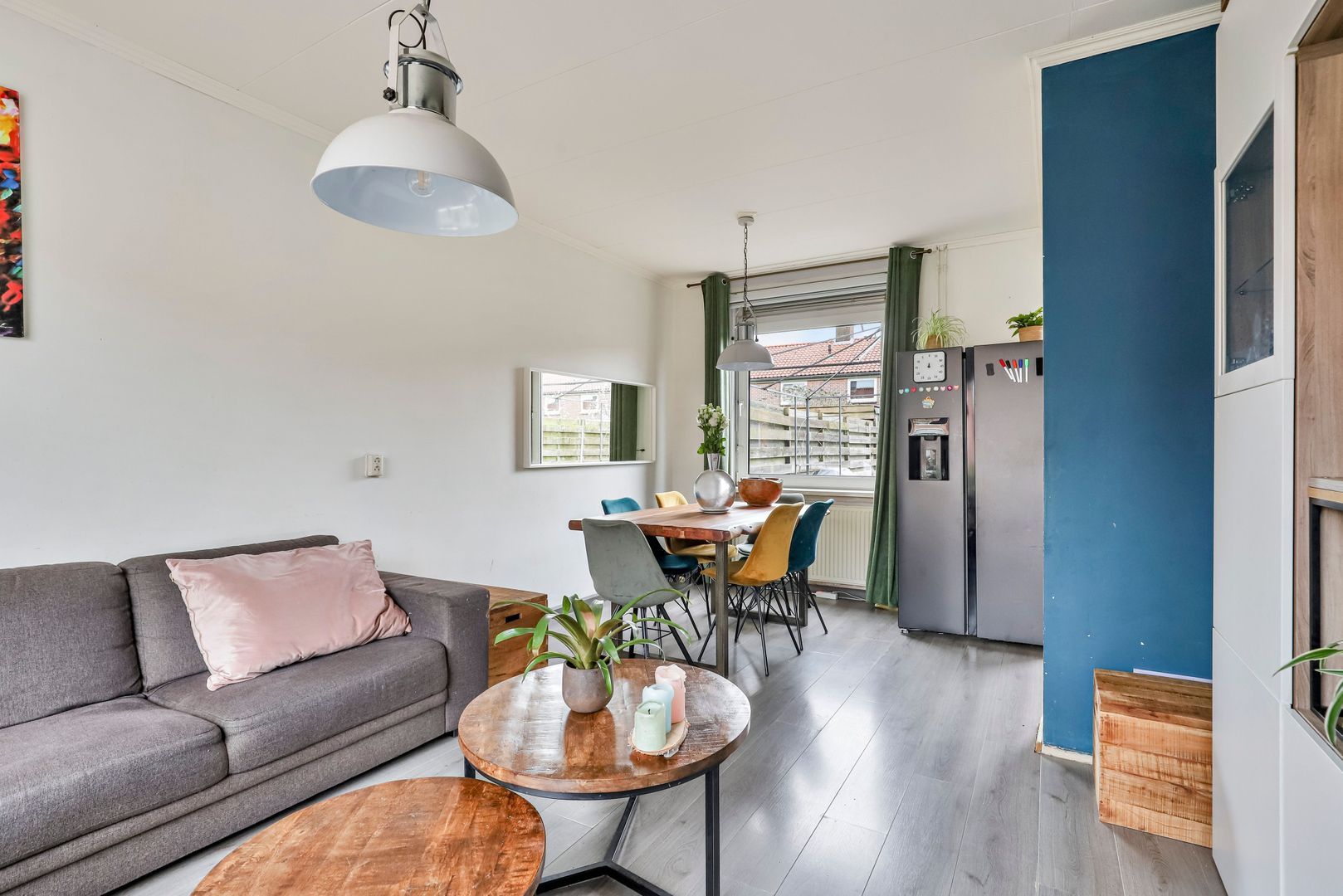 De woning heeft een lichte woonkamer door de aanwezigheid van grote raampartijen, de open keuken is aan de achterzijde en geeft toegang tot de tuin. De achtertuin is diep, heeft een berging en ligt op het zonnige zuidoosten. De woning heeft grotendeels kunststof kozijnen en geheel voorzien van dubbel glas.