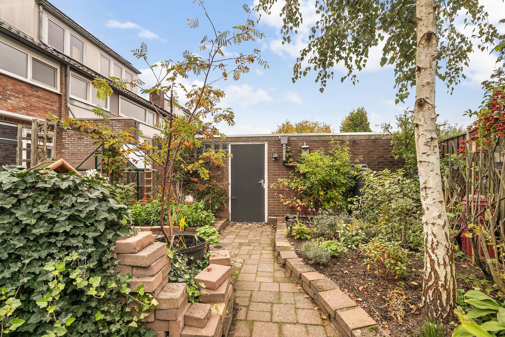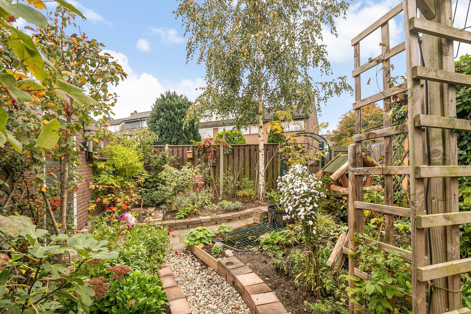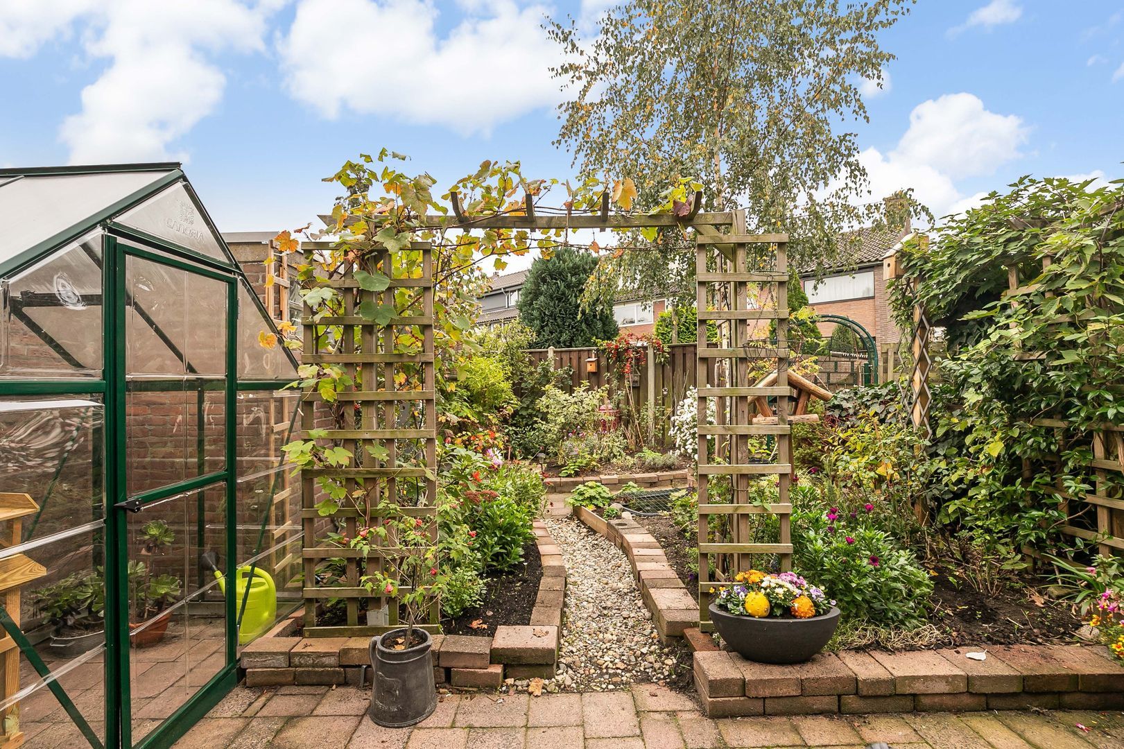 De achtertuin biedt veel privacy en mogelijkheden om naar eigen wens in te richten. Aan de zijkant van het perceel bevindt zich een carport, zodat de auto beschut op eigen terrein kan worden geparkeerd. Daarnaast staat er een vrijstaande stenen berging (7 m²), ideaal voor fietsen en opslag.