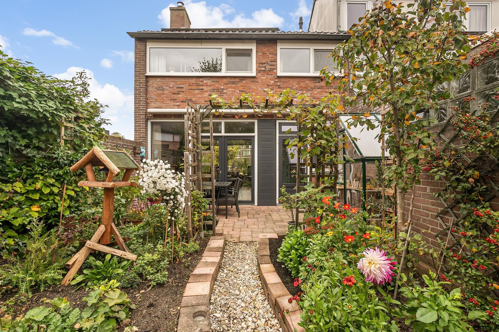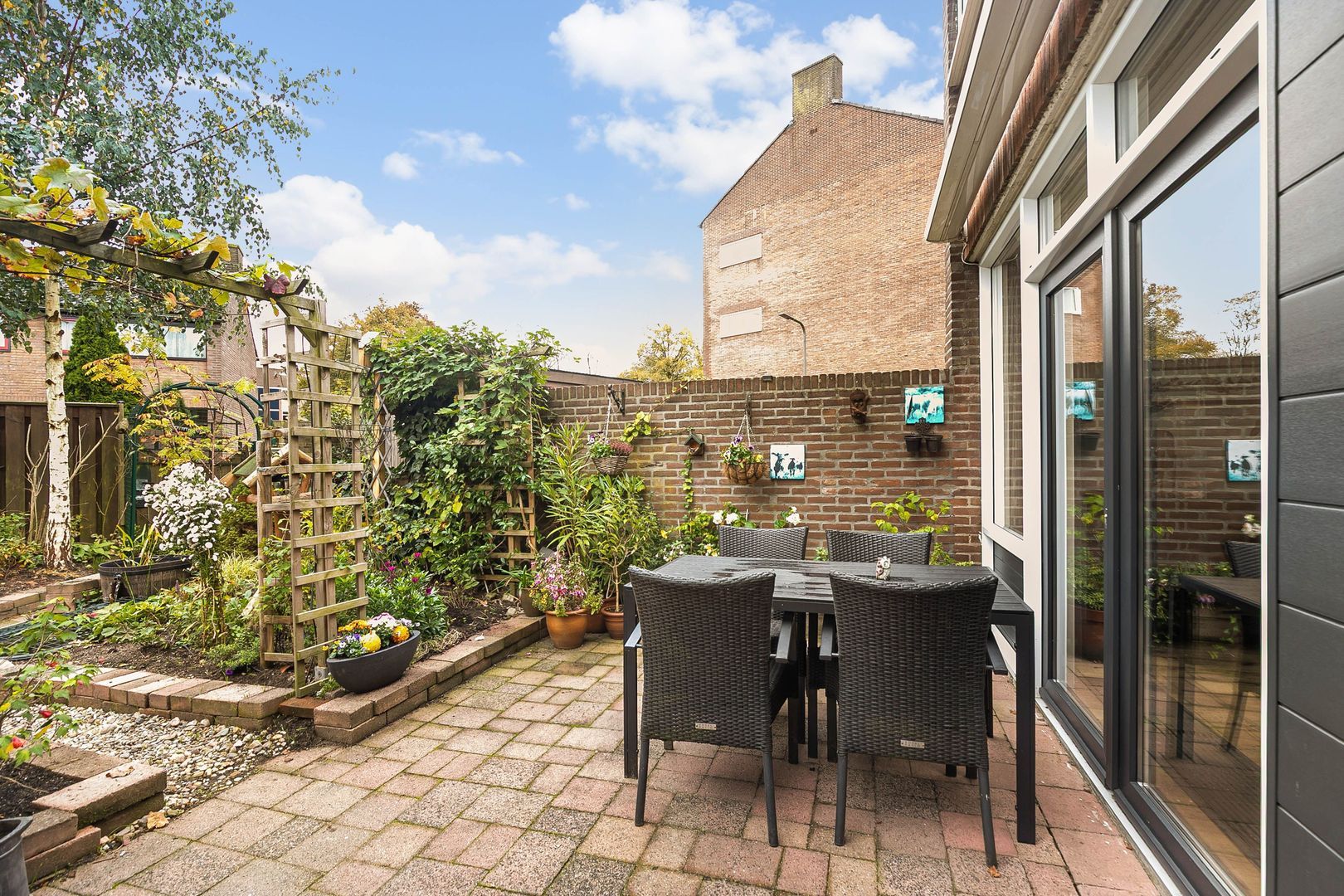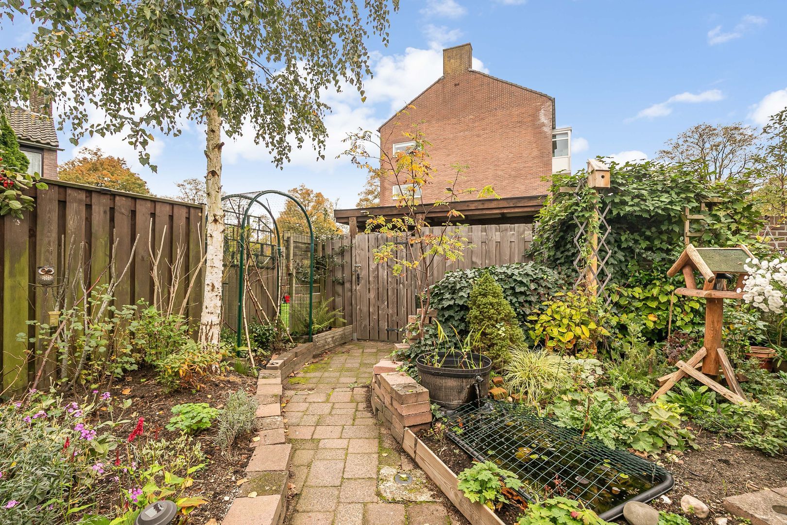 De achtertuin biedt veel privacy en mogelijkheden om naar eigen wens in te richten. Aan de zijkant van het perceel bevindt zich een carport, zodat de auto beschut op eigen terrein kan worden geparkeerd. Daarnaast staat er een vrijstaande stenen berging (7 m²), ideaal voor fietsen en opslag.
