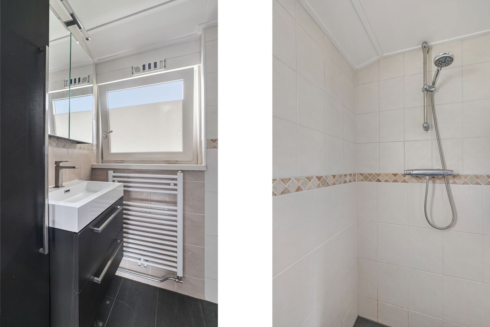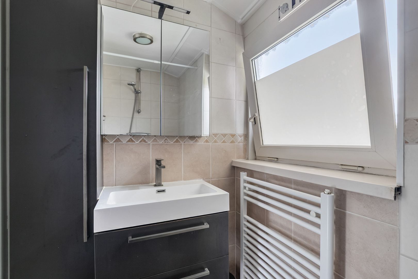 Via de overloop zijn drie slaapkamers bereikbaar. De kamers hebben een prettige indeling en zijn geschikt als slaap-, werk- of hobbyruimte. De badkamer recentelijk vernieuwd en is functioneel en voorzien van een douche, wastafel en meubel.