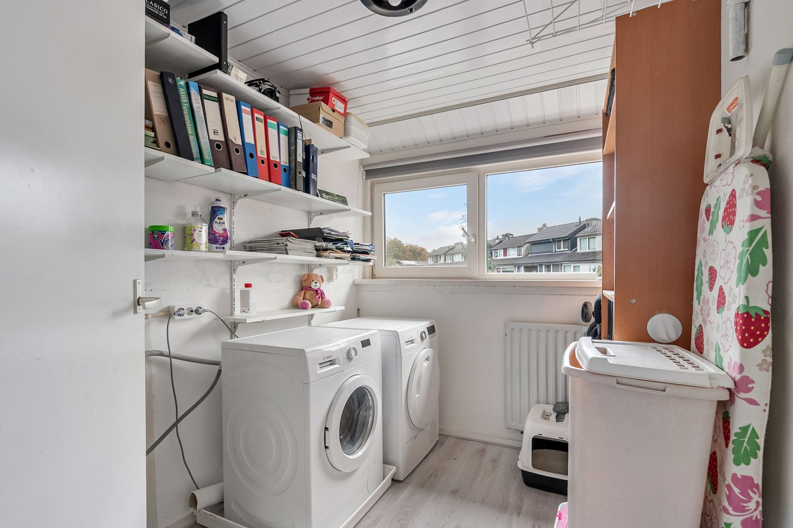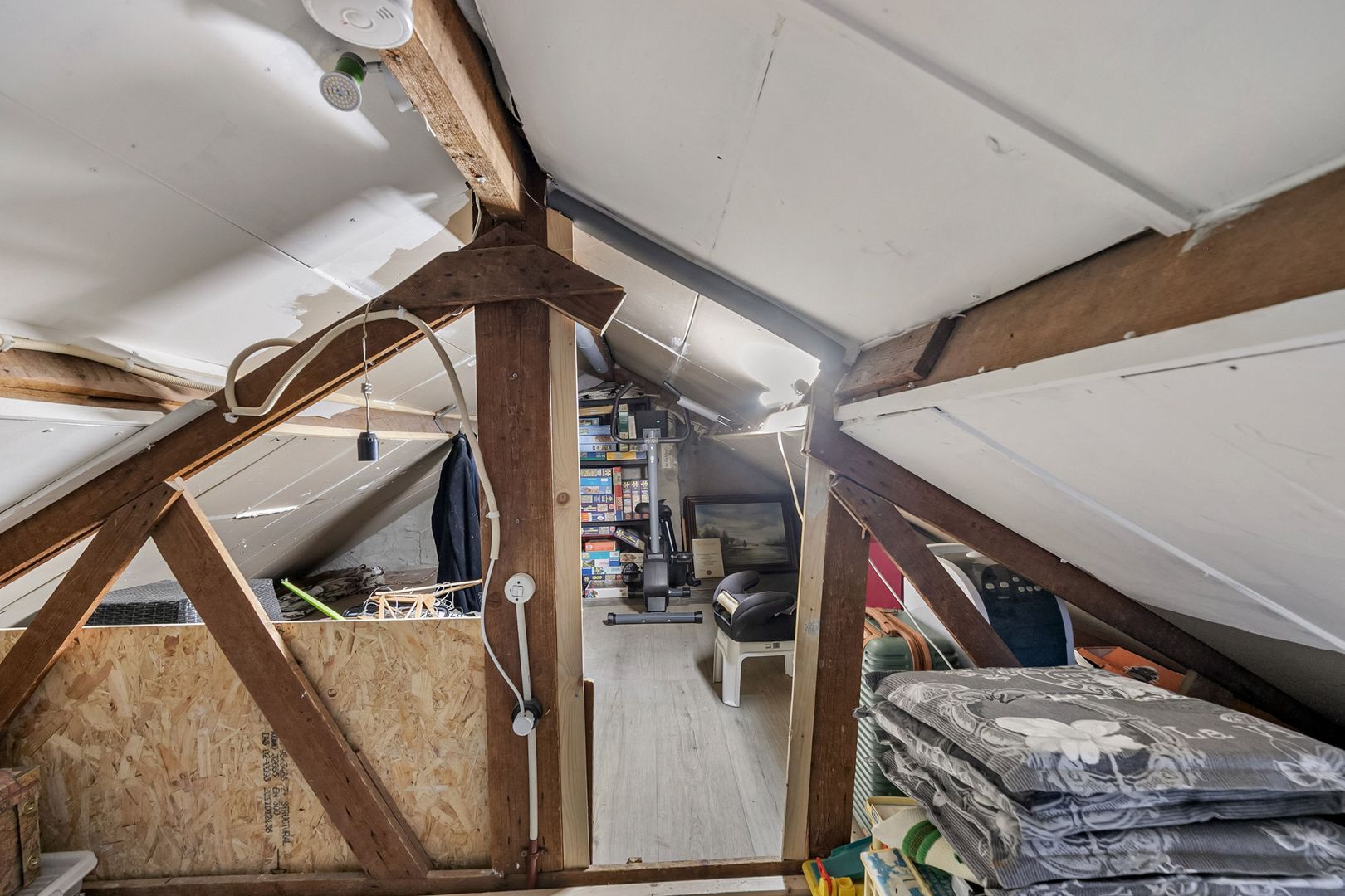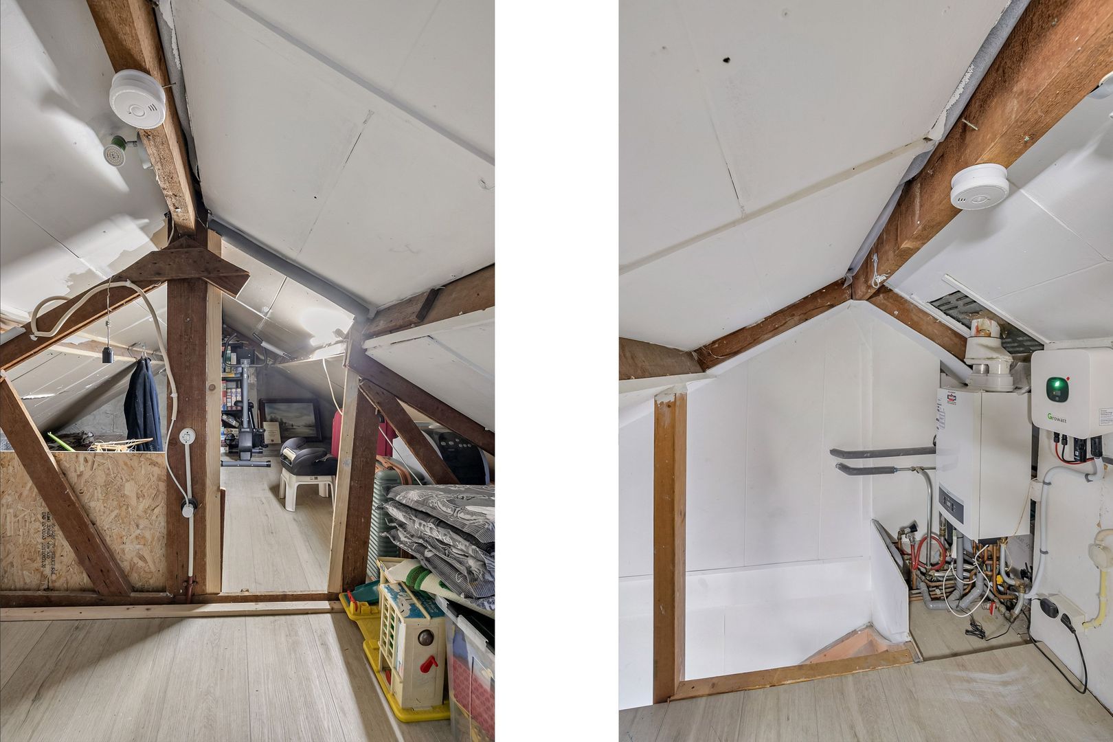 - Vaste trap naar de zolder, ideaal als bergruimte of met potentie voor uitbreiding via een nokverhoging.
