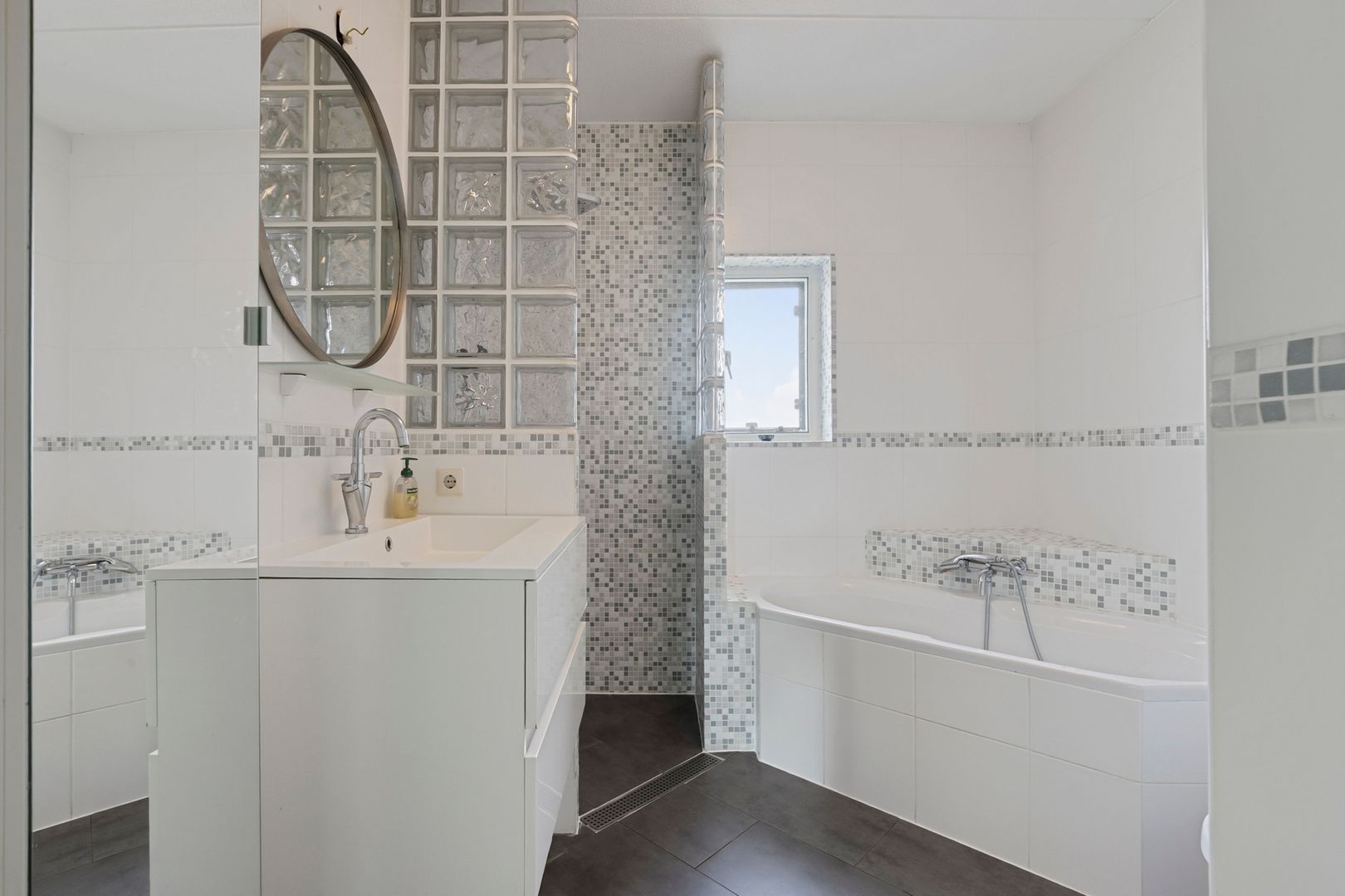 Eerst kom je op de overloop, deze geeft toegang tot 3 slaapkamers en de badkamer. Er zijn 2 slaapkamers aan de achterzijde van de woning en een 3e slaapkamer aan de voorzijde, allen van een goede afmeting. De badkamer is voorzien van een ligbad/douchecombinatie, 2e toilet en de wastafel.