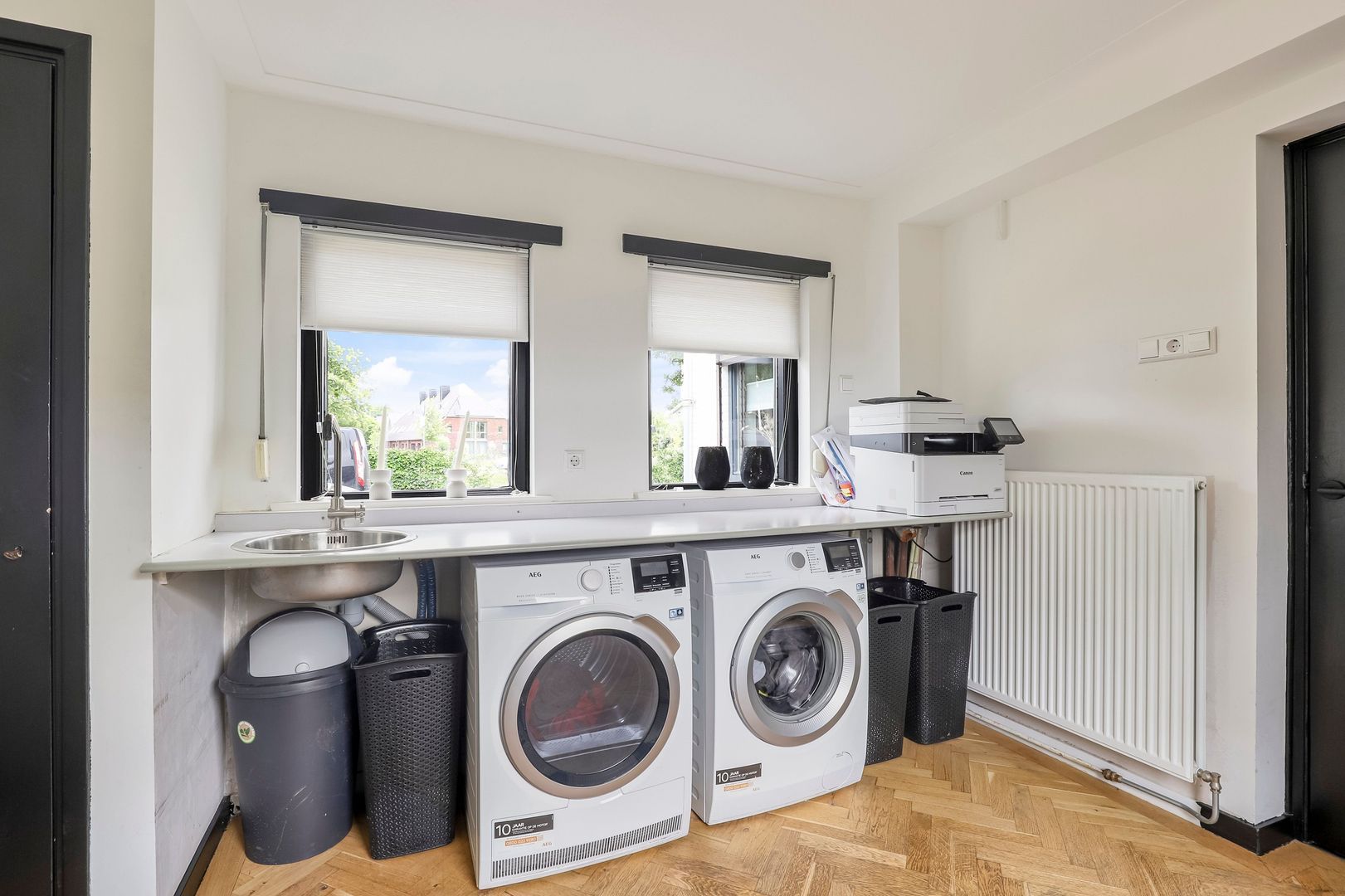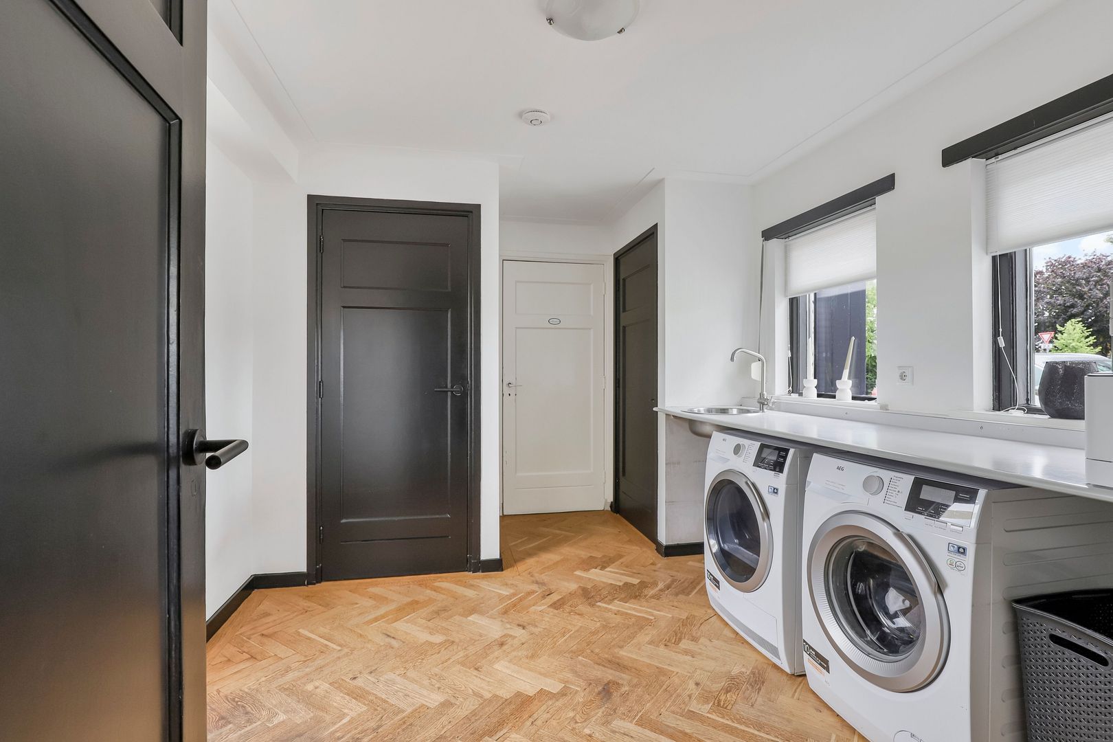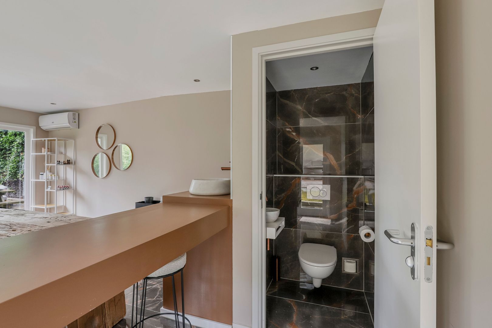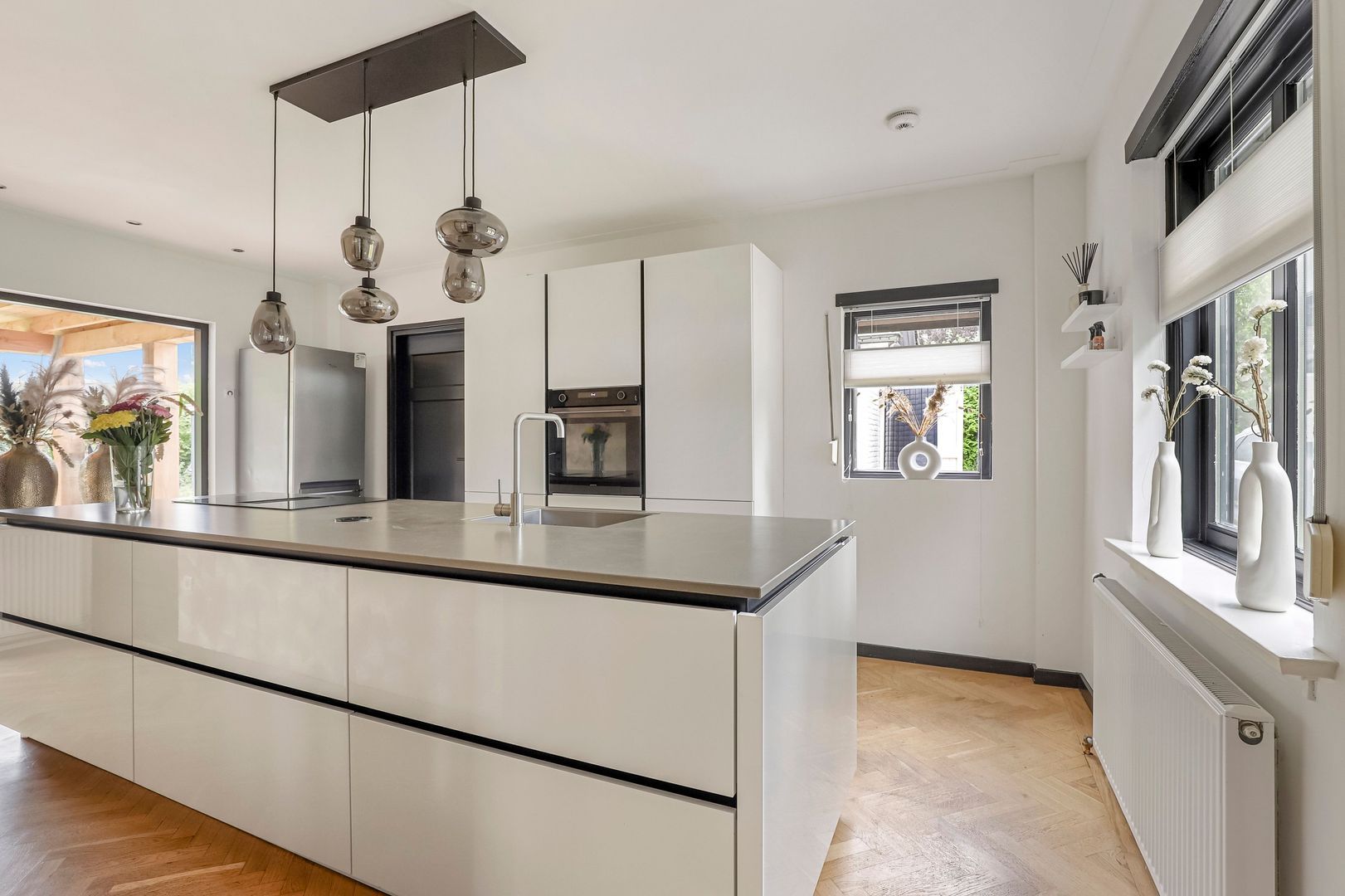 Met een indrukwekkende breedte van 22 meter op de begane grond, geniet je van een tuingerichte woonkamer met een gezellige houtkachel en openslaande deuren naar een zonovergoten terras. De eetkamer en de prachtige keuken, uitgerust met een kook- en spoeleiland en luxe inbouwapparatuur, maken dit de ideale plek voor culinaire hoogstandjes en gezellig samenzijn. Daarnaast biedt de woning een kelder, een praktische bijkeuken, en een multifunctionele ruimte met douche en wastafel. Hier kun je sporten, werken, wonen én slapen.