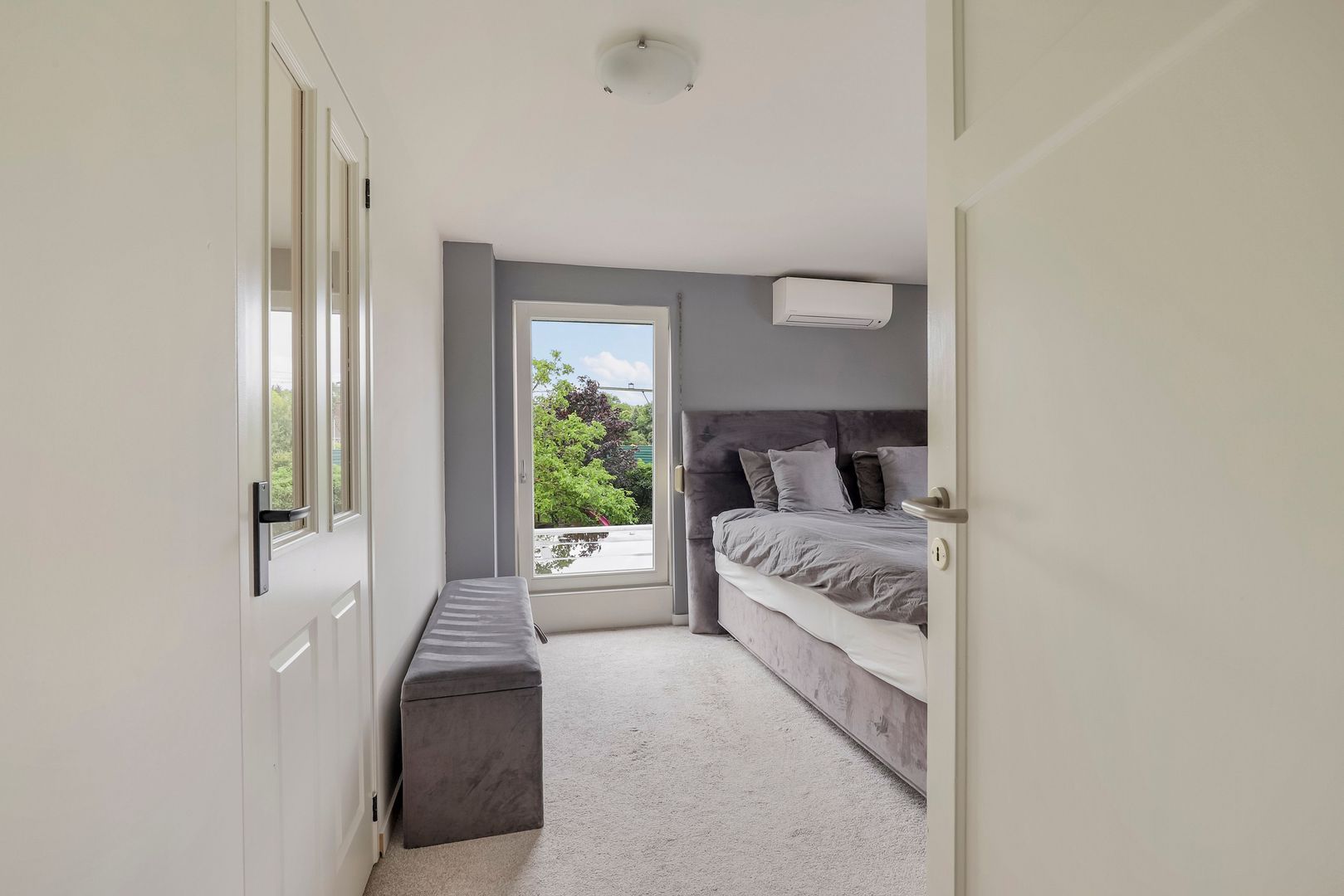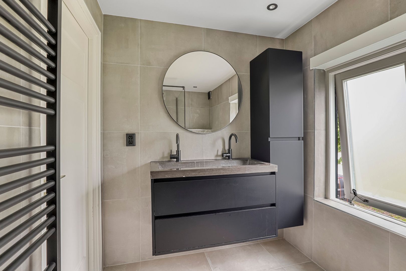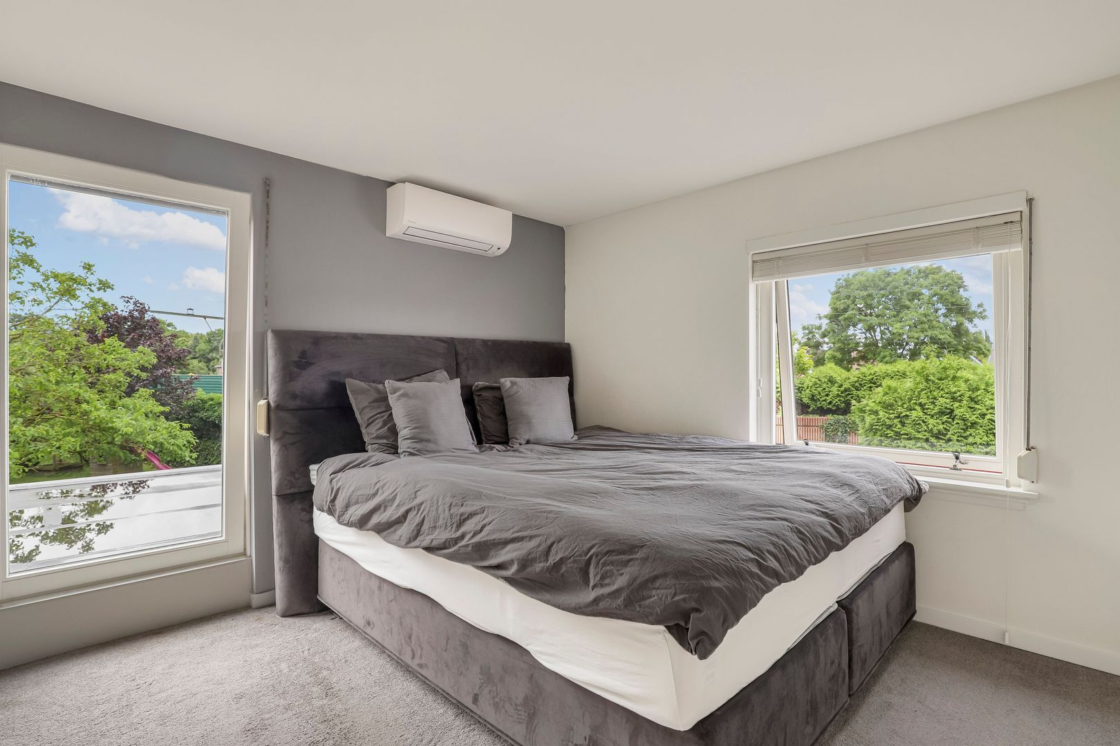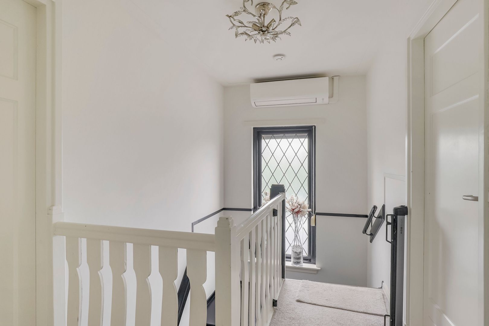 Overloop met airconditioning en veel lichtinval door het glas-in-lood raam, 4 slaapkamers, waaronder de masterbedroom die tevens voorzien is van airconditioning, luxe badkamer met inloopdouche, toilet en dubbele wastafel met meubel. Via een vlizotrap bereik je de bergzolder.