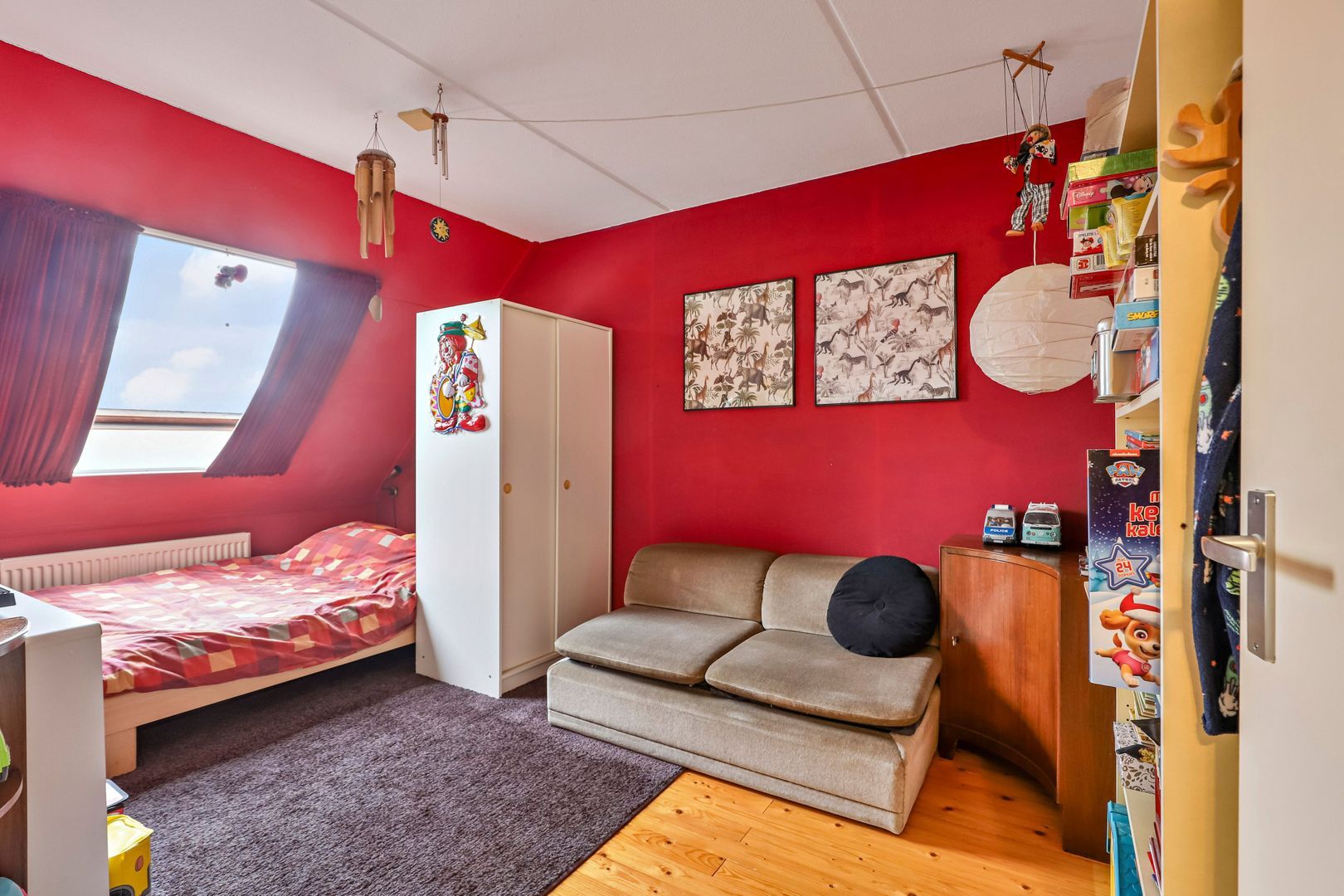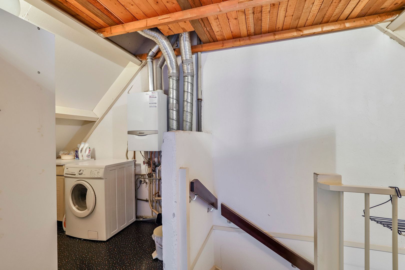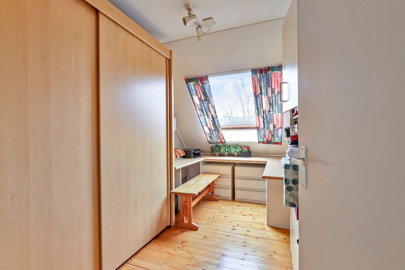 Op de overloop is veel bergruimte aanwezig en hier is tevens de opstelplaats van de c.v. combiketel (bouwjaar 2013) en de aansluiting t.b.v. de wasmachine en de droger. De 4e slaapkamer is ruim te noemen en is voorzien van een groot dakraam.