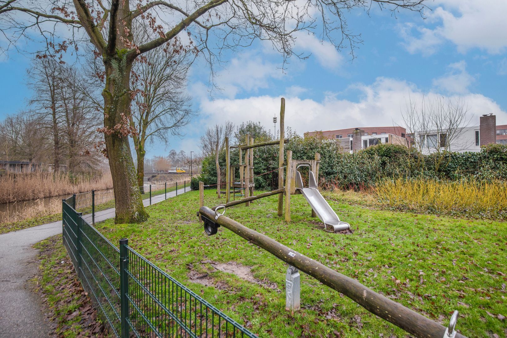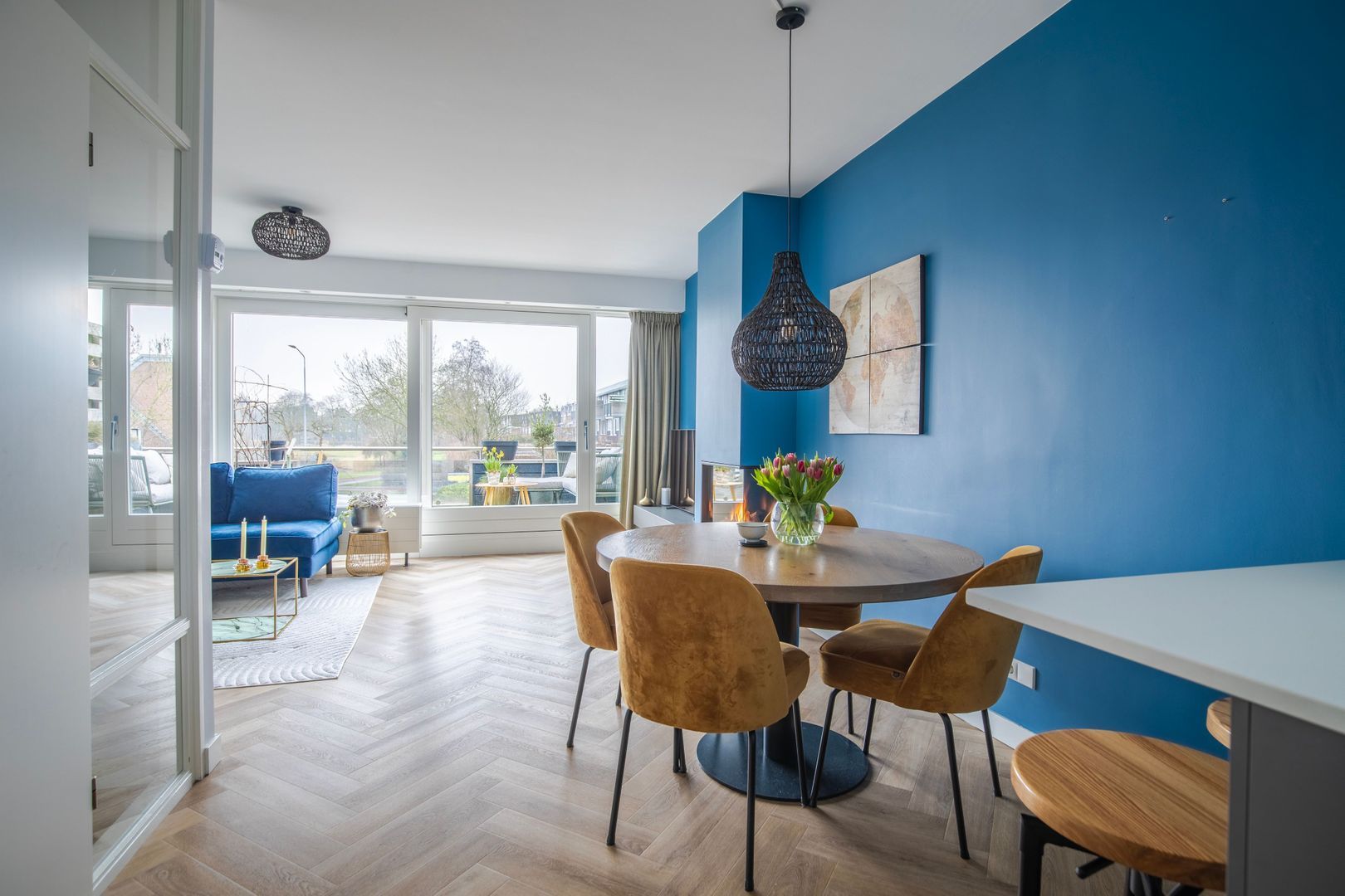 Vanaf de woonkamer en het dakterras is er een vrij uitzicht over een groenstrook met water waar er bijvoorbeeld met strenge winters kan worden geschaatst, dit geeft een heel leuk plaatje. Het appartement beschikt over 100 m2 woonoppervlakte verdeeld over 2 verdiepingen.