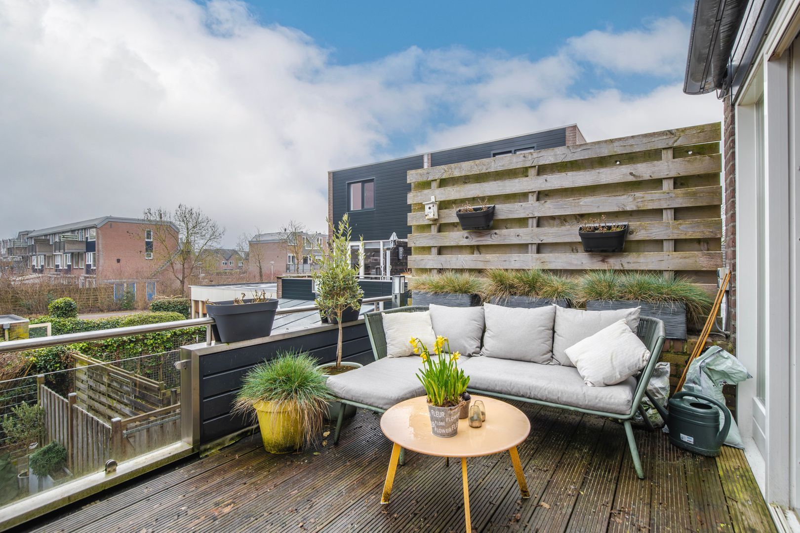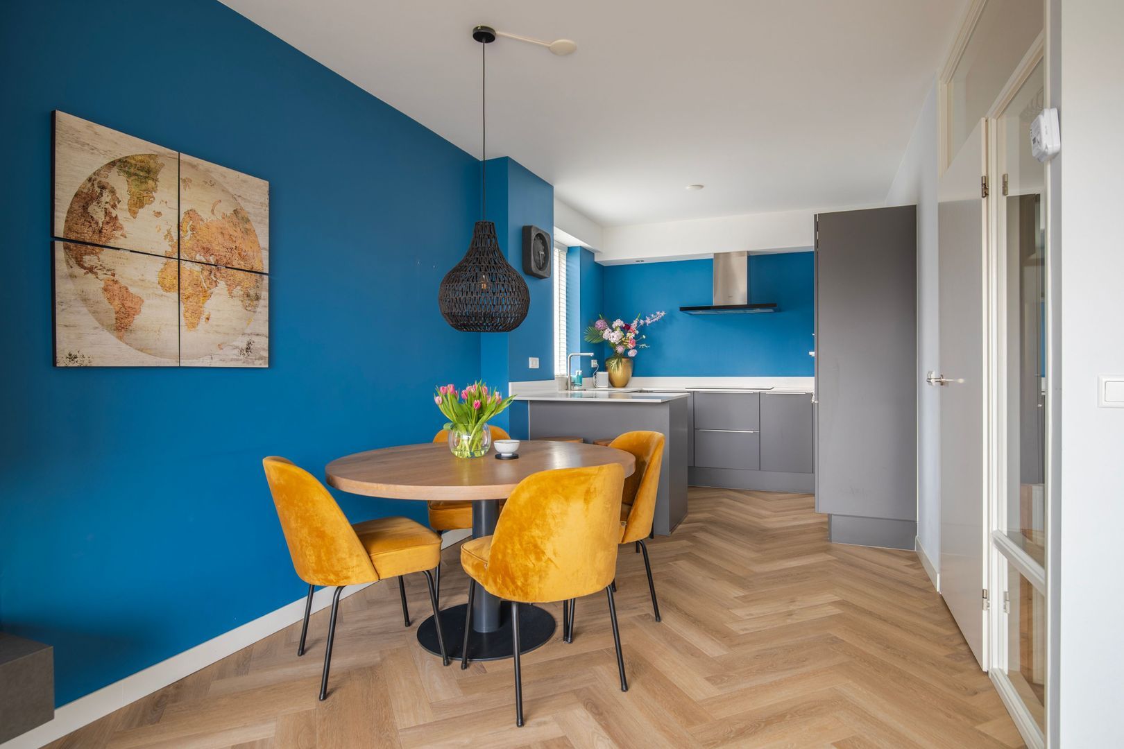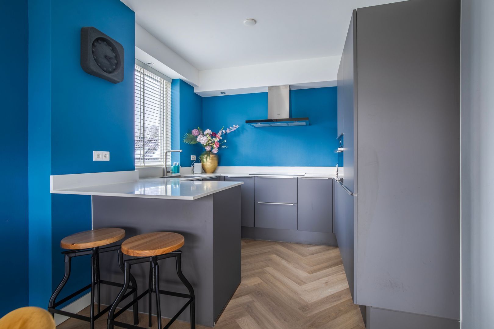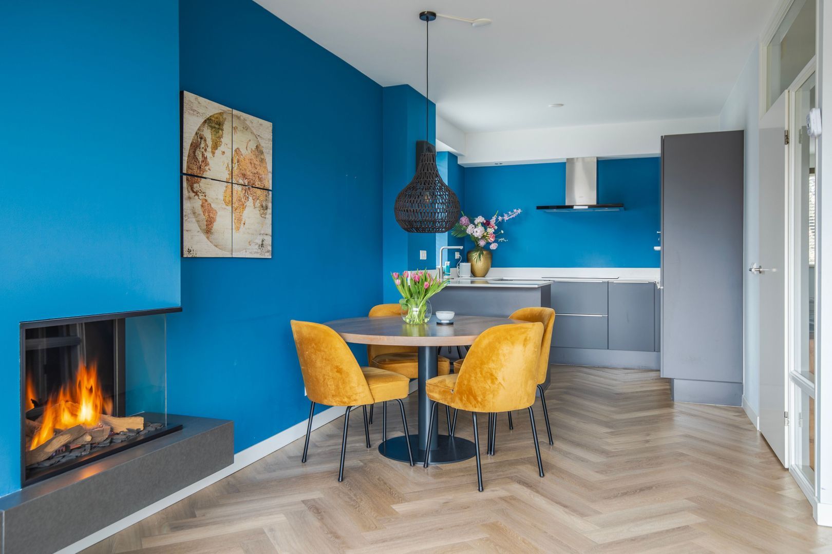 Vanuit de trap kom je in de gang/hal met aan je linkerzijde meteen de deur naar de woonkamer en de open keuken. De keuken is uitgevoerd in een U-blok met een hoog zitgedeelte waar je gezellig een boterham kunt eten voordat je naar school of je werk gaat. Vanuit de keuken kijk je leuk de straat op. De keuken is voorzien van diverse inbouwapparatuur zoals een stoom-oven, inductiekookplaat, koelkast, vaatwasser en een afzuigkap. De eethoek kun je goed in het midden van deze ruimte plaatsen. De knusse woonkamer is gelegen aan de achterzijde en heeft een gezellige gashaard. Vanuit de woonkamer is er toegang tot het dakterras middels een schuifpui. Deze verdieping is geheel voorzien van een neutrale pvc vloer.