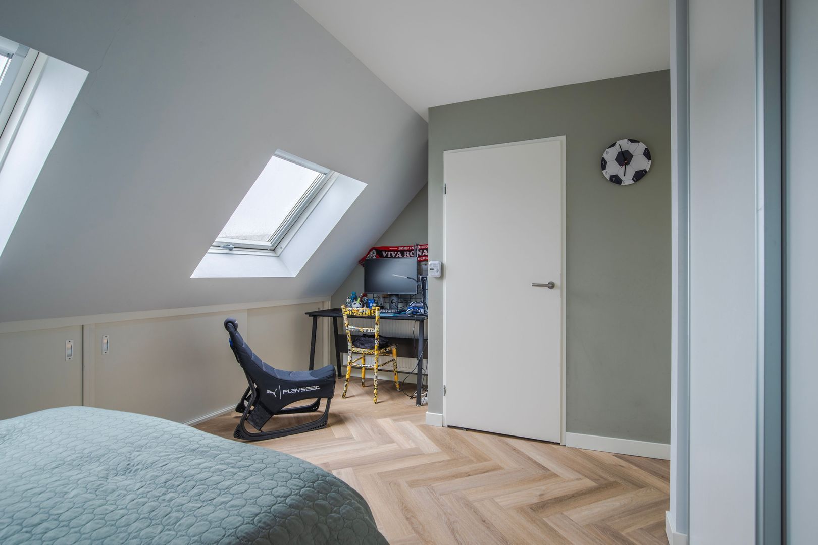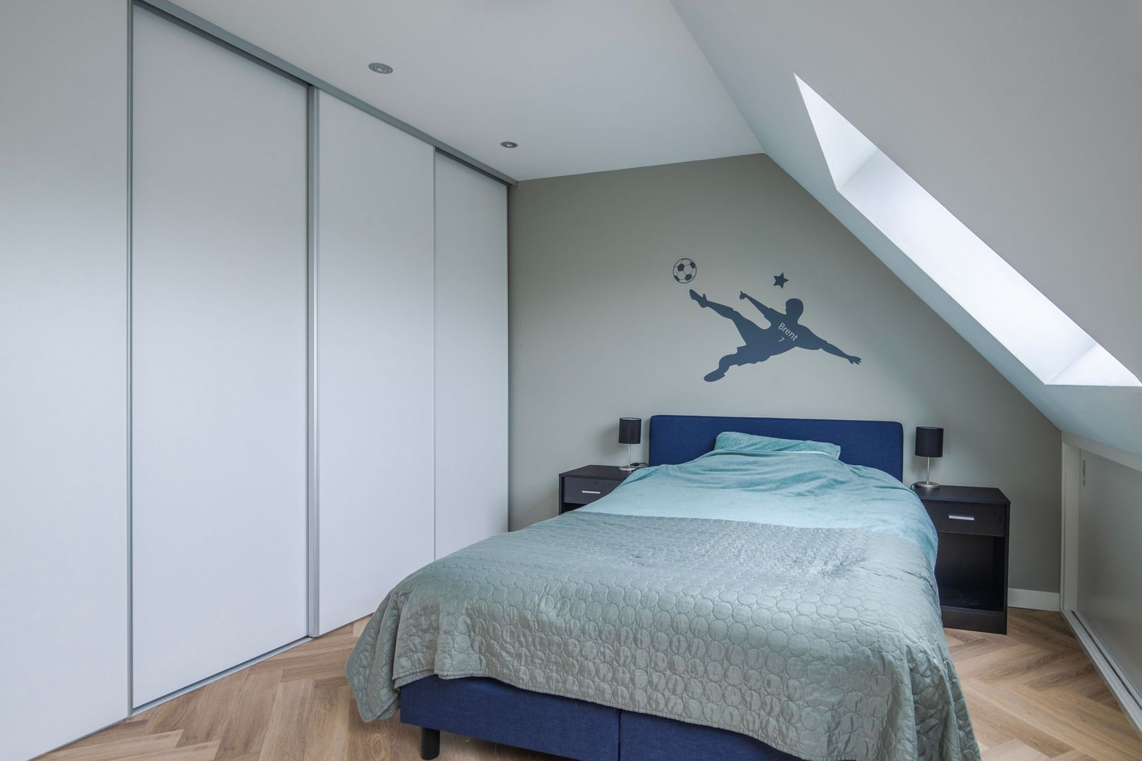 Middels een vaste trap kom je op deze, uitgebouwde verdieping waar zich 2 ruime slaapkamers bevinden en een grote badkamer. De overloop heeft een grote lichtkoepel en hier is ook een airco-installatie. Beide slaapkamers zijn royaal te noemen en geven genoeg ruimte om kasten te kunnen plaatsen. In een vaste kast bevindt zich de opstelling van de c.v. ketel en bergruimte. De nette badkamer is voorzien van douchehoek, het 2e toilet en een dubbele wastafel. Zowel de trappen als deze verdieping zijn voorzien van pvc vloeren.