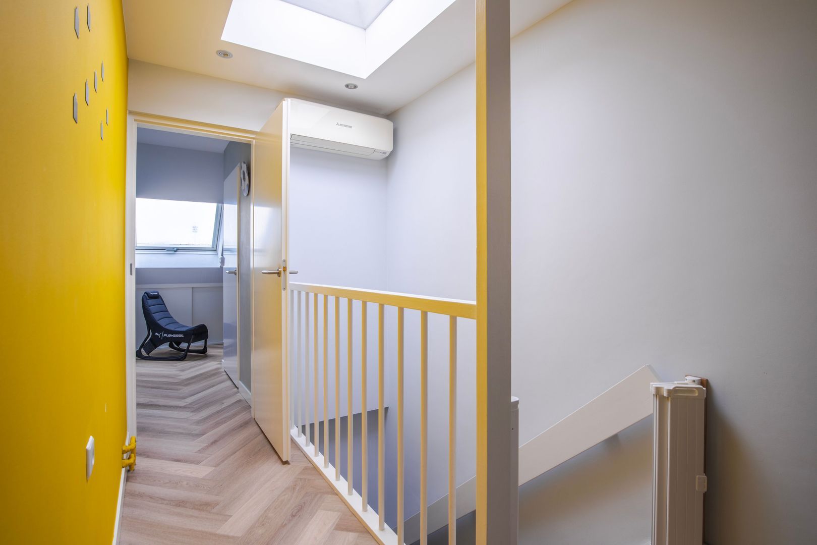 • De overloop heeft een grote lichtkoepel en hier hangt de airco-installatie.
