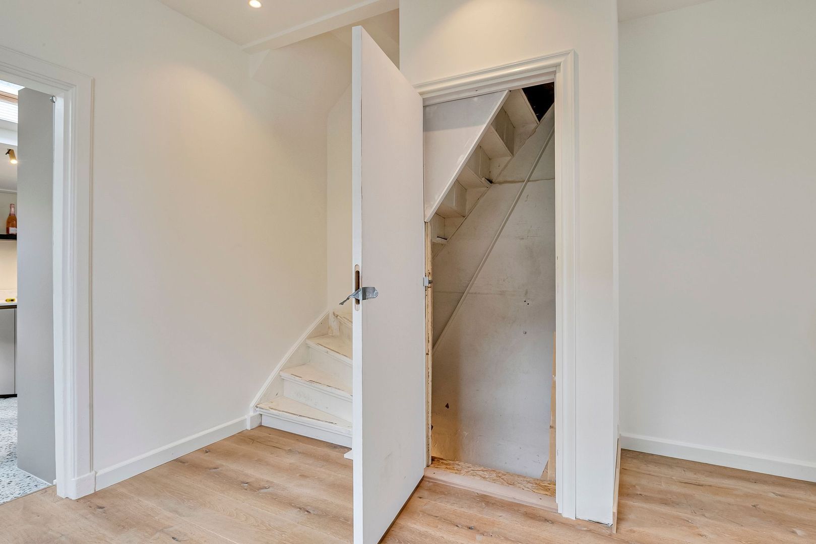 Entree van de woning in de vernieuwde hal. Vanuit de hal kom je in de woonruimte verdeeld in de zithoek aan de voorzijde en de eethoek aansluitend aan de keuken. De nieuwe keuken is vergroot en vernieuwd in 2025 en voorzien van diverse inbouwapparatuur zoals een inductiekookplaat met ingebouwd afzuigsysteem, grote koelkast en aparte grote vriezer, stoomoven en een vaatwasser. De keuken is opgesteld in 3 blokken met lichten kasten en afgewerkt met een licht composiet blad. Vanuit de keuken kom je in de tuinkamer met openslaande deuren naar de tuin. Hier is ook het toilet en de kast met de opstelling van de c.v. combiketel, bouwjaar 2025.