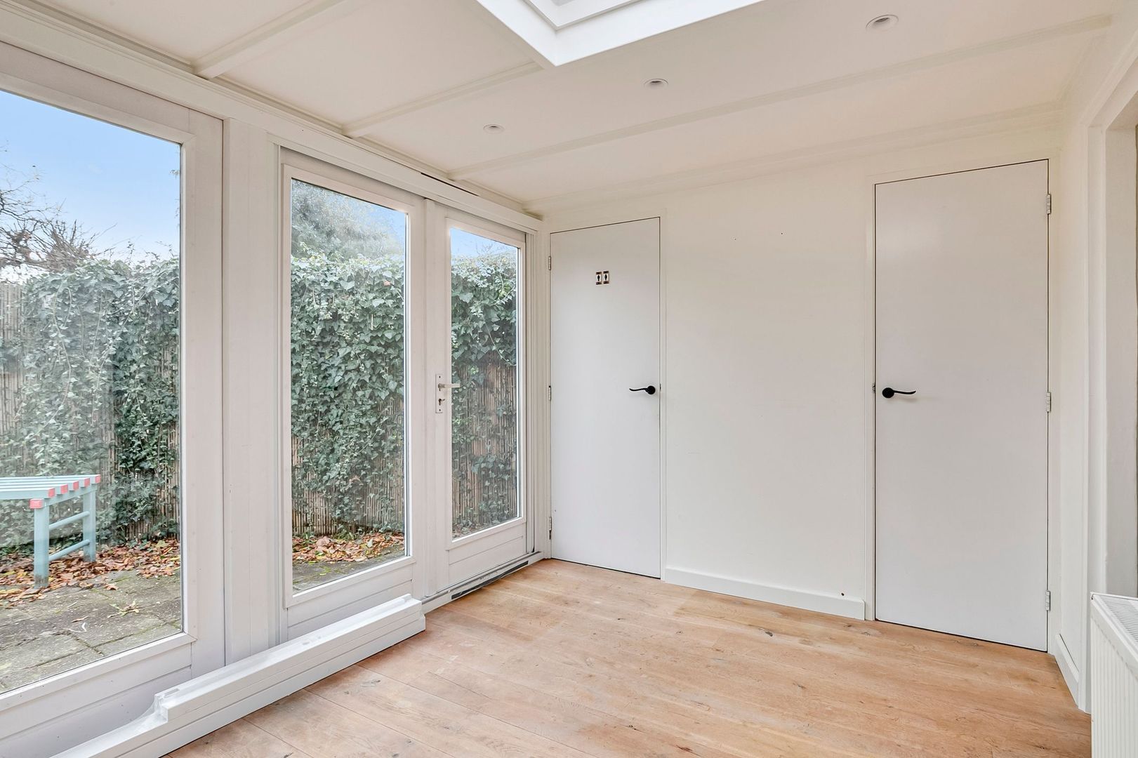 Achter de keuken is een tuinkamer die je heel leuk kunt inrichten als eetkamer maar ook leuk kunt gebruiken als 2e woonkamer. De deuren aan de achterzijde kunnen allemaal open waardoor heerlijk de ochtendzon naar binnen komt. Er zijn 3 slaapkamers en er is bergruimte op de zolder.